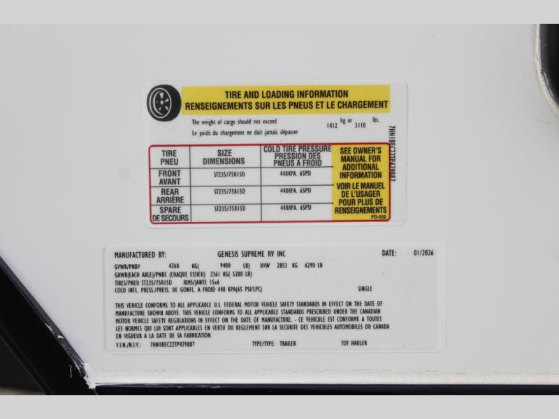 New 2026 Genesis Supreme G220LTE Toy Hauler Travel Trailer