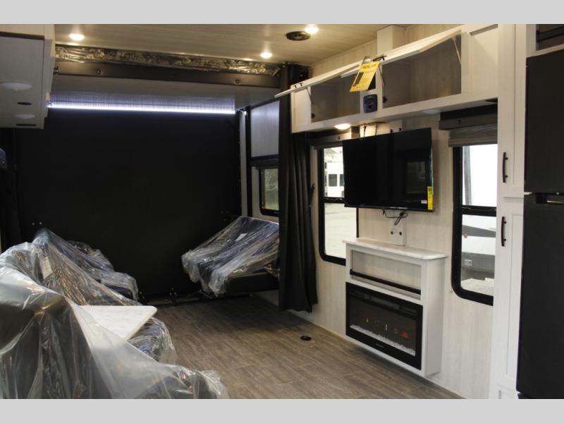 All sizes of off-road toys can fit into one of these Genesis Supreme fifth wheel toy haulers or travel trailer toy haulers! They are made for the outdoor enthusiasts and can handle harsh environments while still providing a luxurious lifestyle. With innovative floorplans built by engineers, you can know you will find what you're looking for in a toy hauler. Start your off-road journey today with your favorite model!