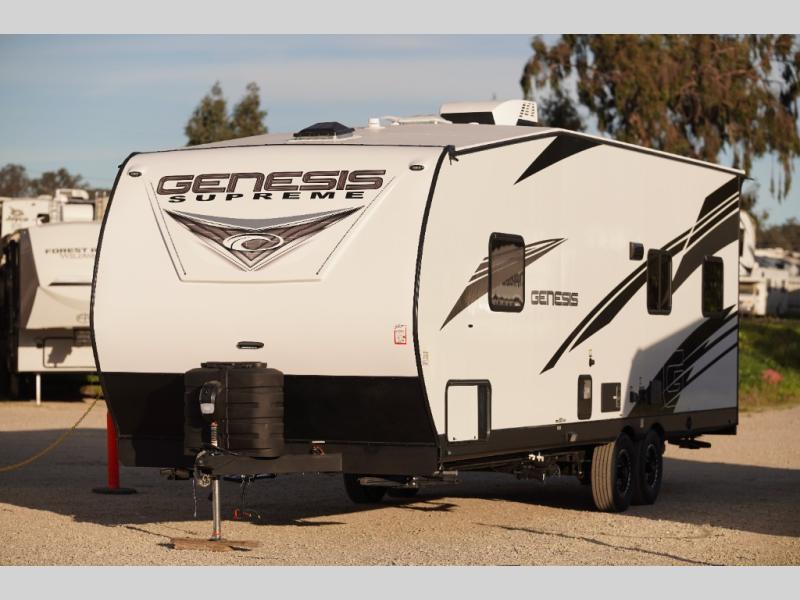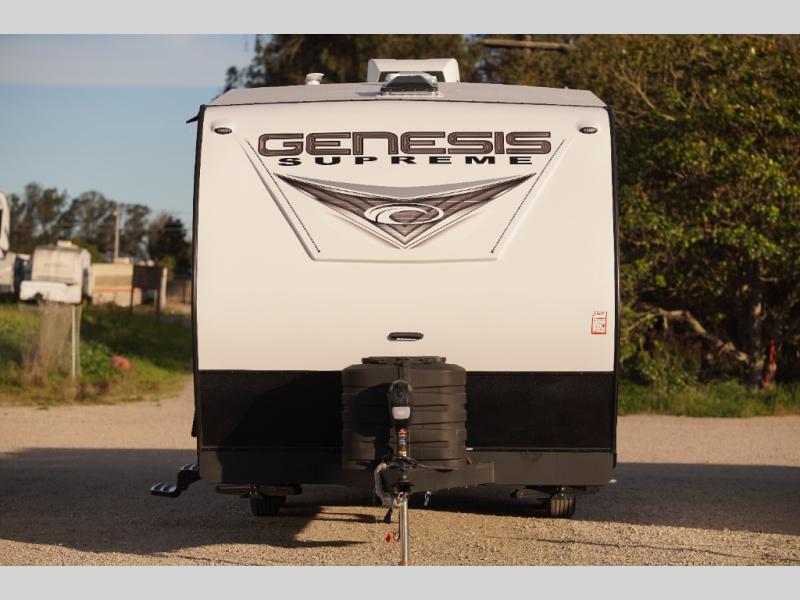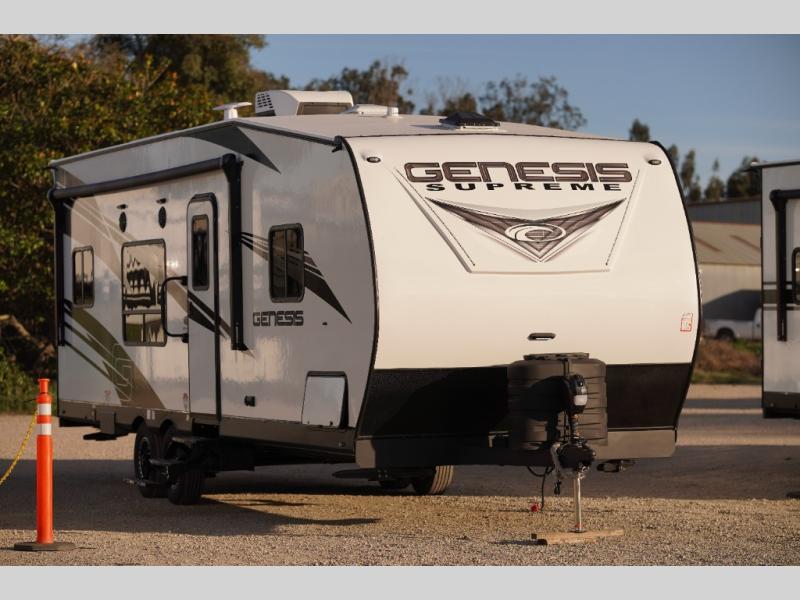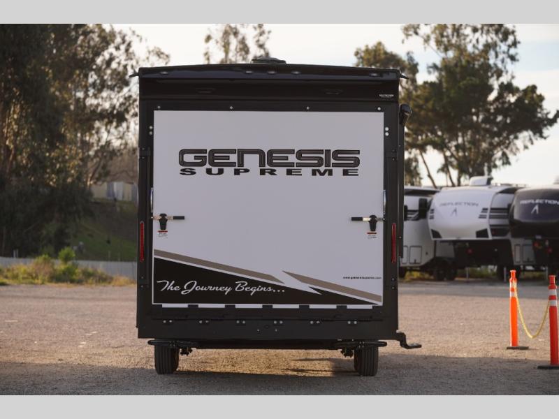 All sizes of off-road toys can fit into one of these Genesis Supreme fifth wheel toy haulers or travel trailer toy haulers! They are made for the outdoor enthusiasts and can handle harsh environments while still providing a luxurious lifestyle. With innovative floorplans built by engineers, you can know you will find what you're looking for in a toy hauler. Start your off-road journey today with your favorite model!