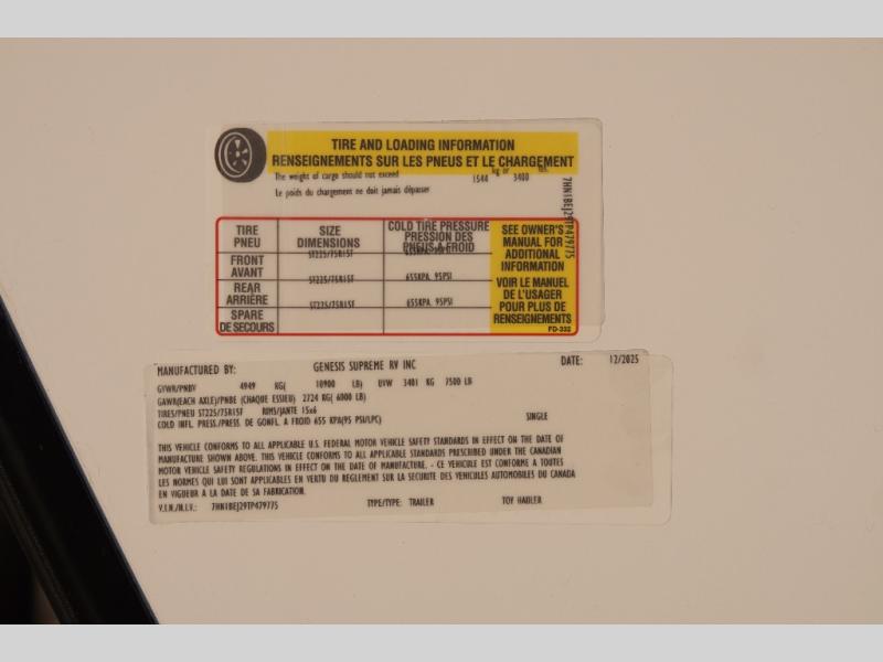 New 2026 Genesis Supreme G2515FSXL Toy Hauler Travel Trailer