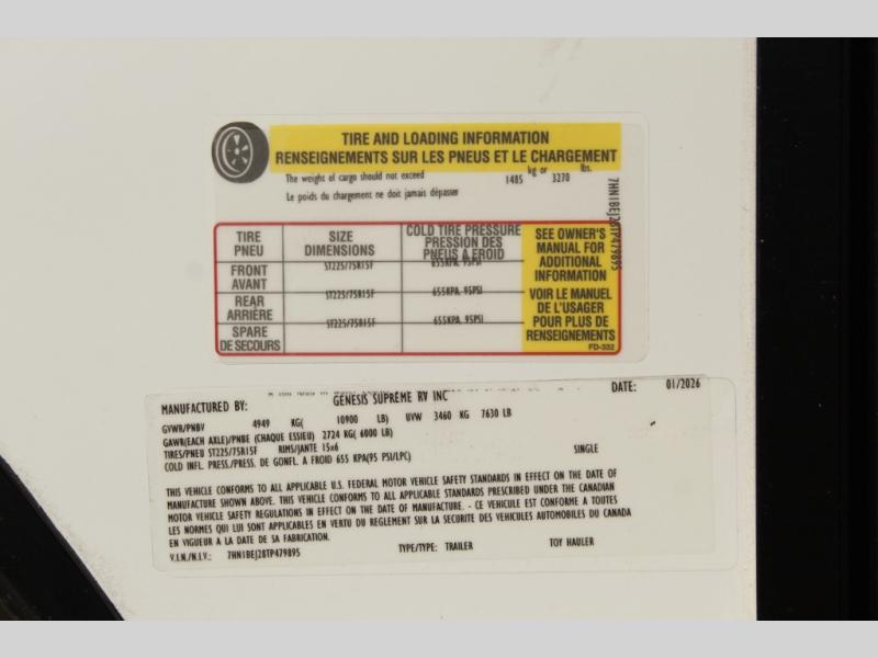 New 2026 Genesis Supreme G2515FSXL Toy Hauler Travel Trailer