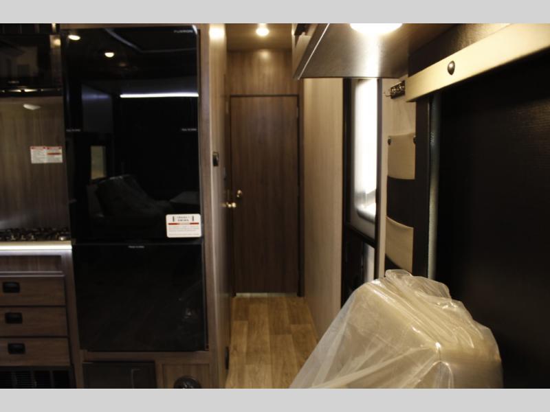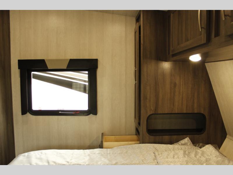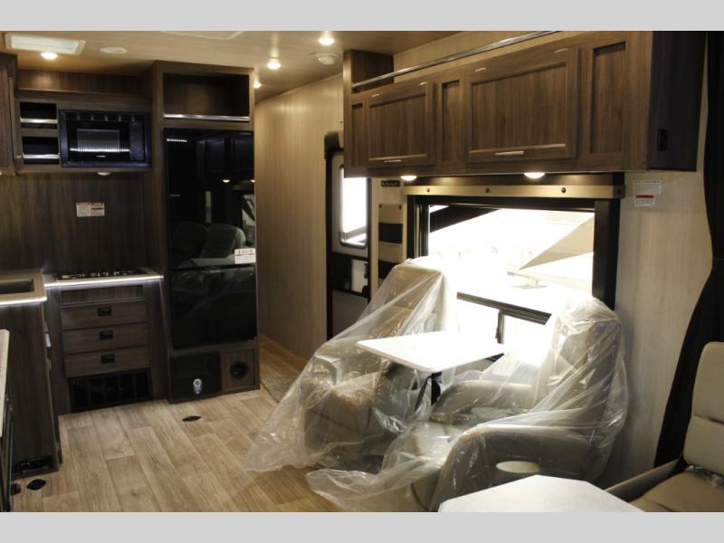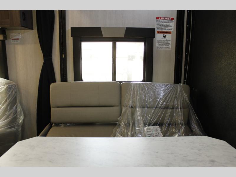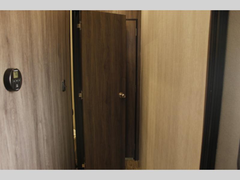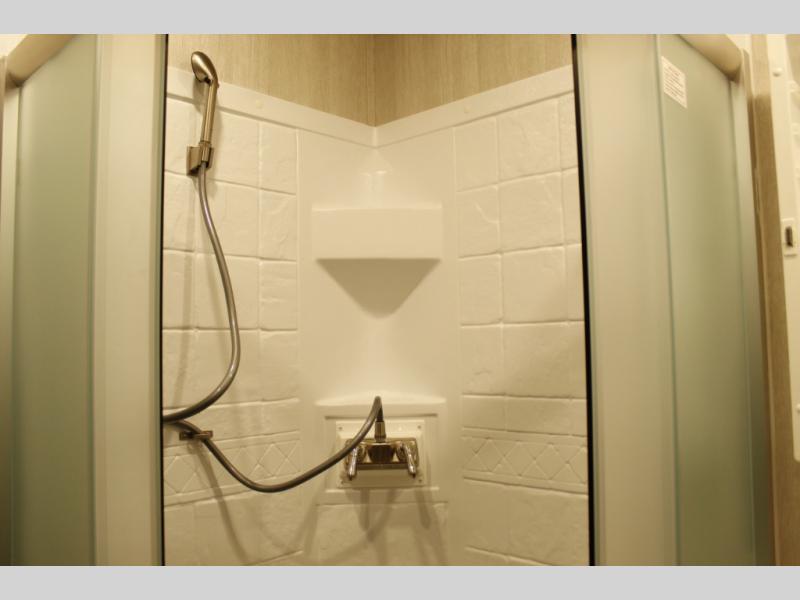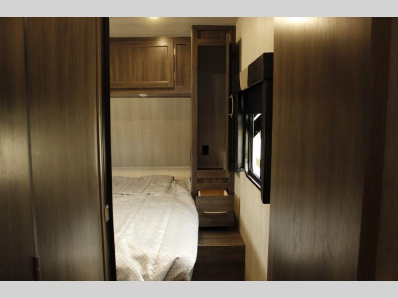 Grab your riding gear, load up the bikes, and head for the hills in this toy hauler for four. Once your toys are unloaded from the 15' total garage space, you can relax on the dual opposing sofas or on the dual lounge chairs with a table in between. There is also an entertainment center across from the chairs, and an optional queen bed above the sofas if you need more sleeping space. A full kitchen with a three burner cooktop, microwave oven, sink, and refrigerator lets you make meals each day, and the full bath will be much appreciated after trail riding. The front of this model features the private bedroom, complete with an RV queen bed, dual wardrobes, and an overhead cabinet for books and more!