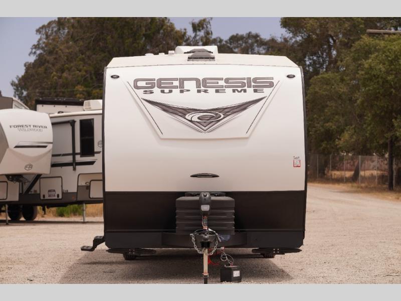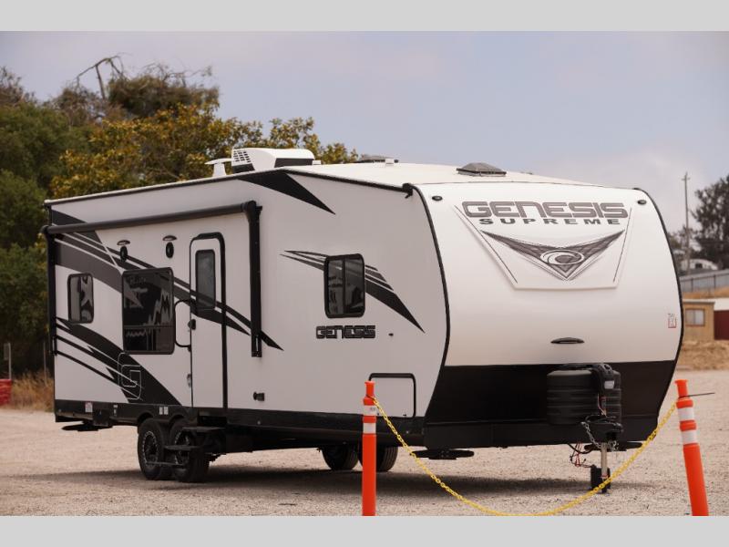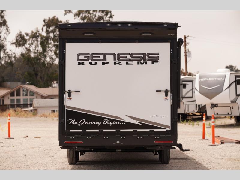 All sizes of off-road toys can fit into one of these Genesis Supreme fifth wheel toy haulers or travel trailer toy haulers! They are made for the outdoor enthusiasts and can handle harsh environments while still providing a luxurious lifestyle. With innovative floorplans built by engineers, you can know you will find what you're looking for in a toy hauler. Start your off-road journey today with your favorite model!