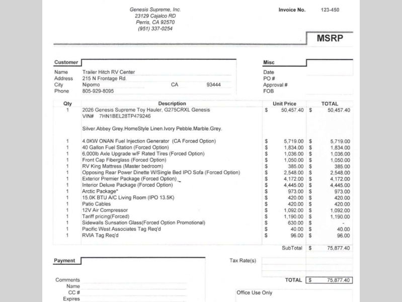 New 2026 Genesis Supreme G275CRXL Toy Hauler Travel Trailer