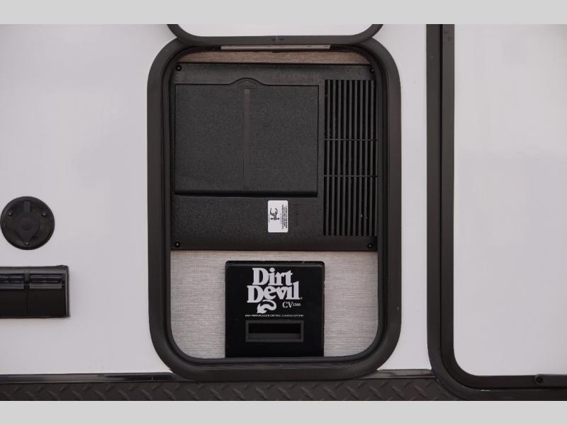 You will love camping in this spacious toy hauler. There is a three burner cooktop to cook meals each day, plus a 12V refrigerator for food storage. The dual lounge chairs give you a place to relax each day, and the drop down bed will give your guests a place to sleep at night. And don't overlook the front private bedroom with a king bed with memory foam for added comfort!