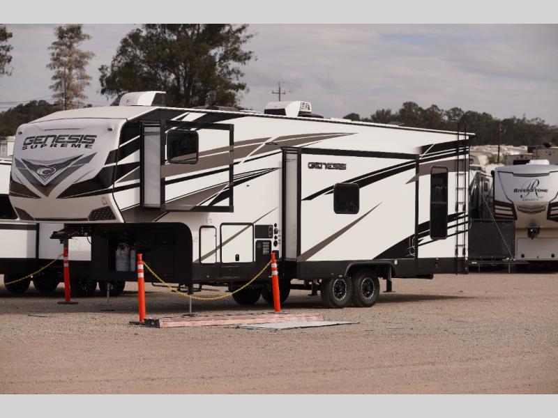 All sizes of off-road toys can fit into one of these Genesis Supreme fifth wheel toy haulers or travel trailer toy haulers! They are made for the outdoor enthusiasts and can handle harsh environments while still providing a luxurious lifestyle. With innovative floorplans built by engineers, you can know you will find what you're looking for in a toy hauler. Start your off-road journey today with your favorite model!