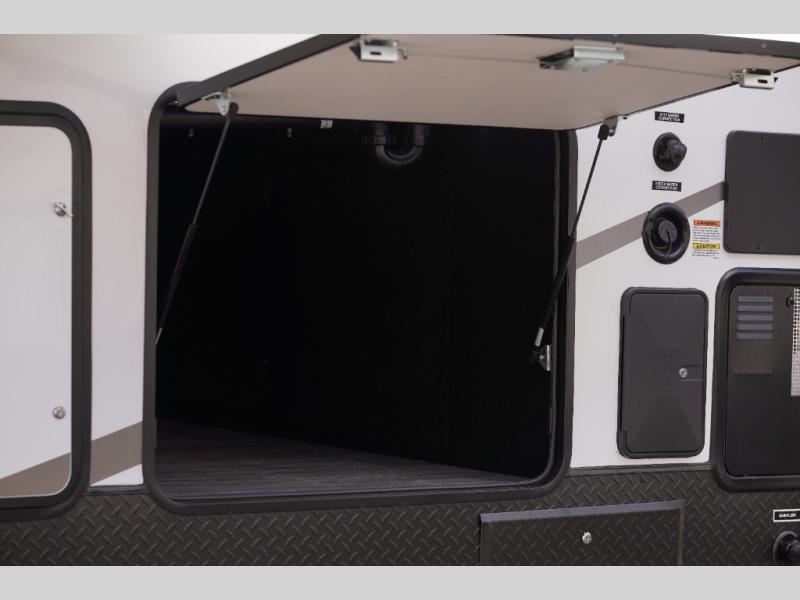 You will love camping in this spacious toy hauler. There is a three burner cooktop to cook meals each day, plus a 12V refrigerator for food storage. The dual lounge chairs give you a place to relax each day, and the drop down bed will give your guests a place to sleep at night. And don't overlook the front private bedroom with a "T" king bed with memory foam for added comfort!