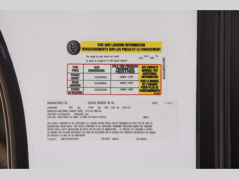 New 2026 Genesis Supreme G3720GSSB Toy Hauler Fifth Wheel