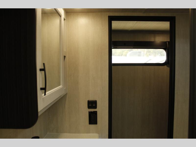 You will love camping in this spacious toy hauler. There is a three burner cooktop to cook meals each day, plus a 12V refrigerator for food storage. The dual lounge chairs give you a place to relax each day, and the drop down bed will give your guests a place to sleep at night. There is also a booth dinette where you can dine, play games, and let extra guests sleep over. And don't overlook the front private bedroom with a "T" king bed with memory foam for added comfort!