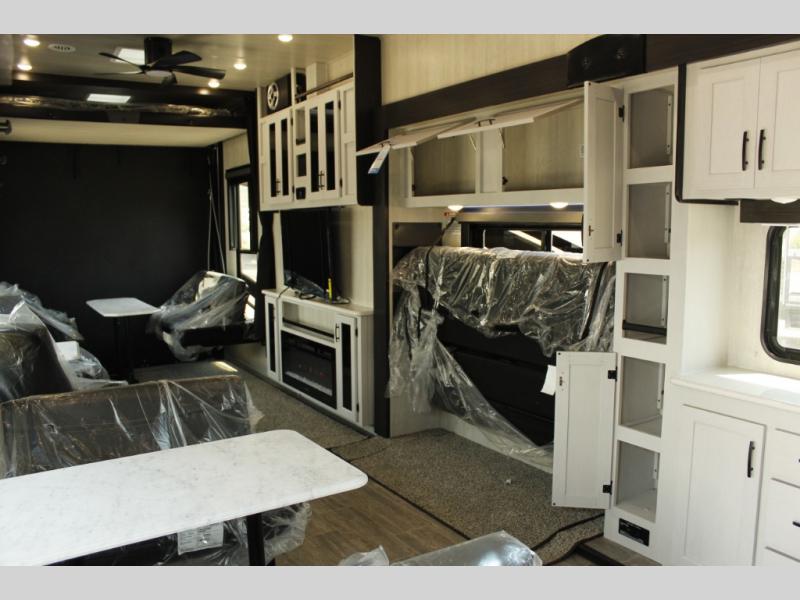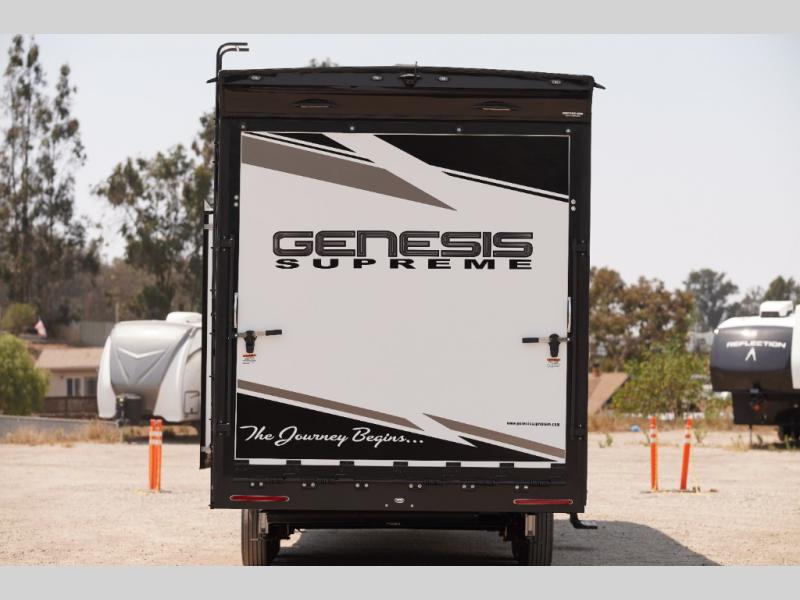 All sizes of off-road toys can fit into one of these Genesis Supreme fifth wheel toy haulers or travel trailer toy haulers! They are made for the outdoor enthusiasts and can handle harsh environments while still providing a luxurious lifestyle. With innovative floorplans built by engineers, you can know you will find what you're looking for in a toy hauler. Start your off-road journey today with your favorite model!