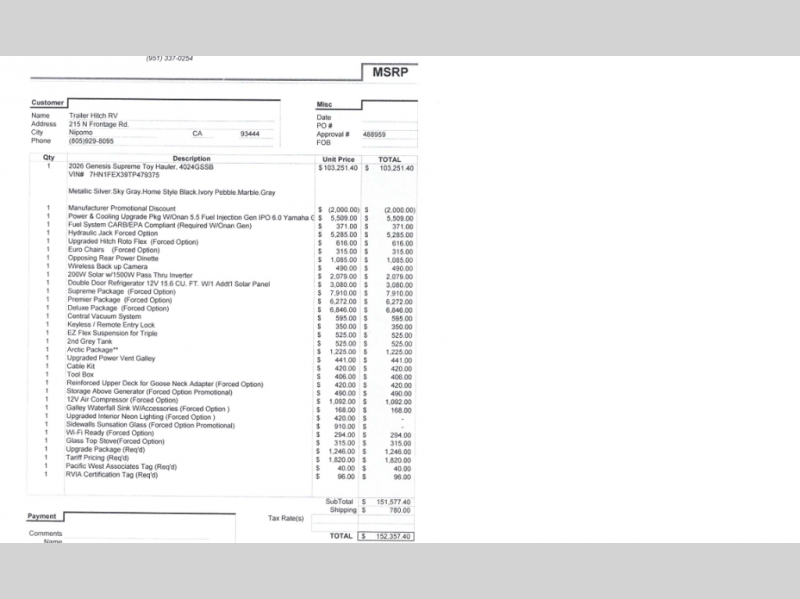 Genesis Supreme toy hauler G4024GSSB highlights: