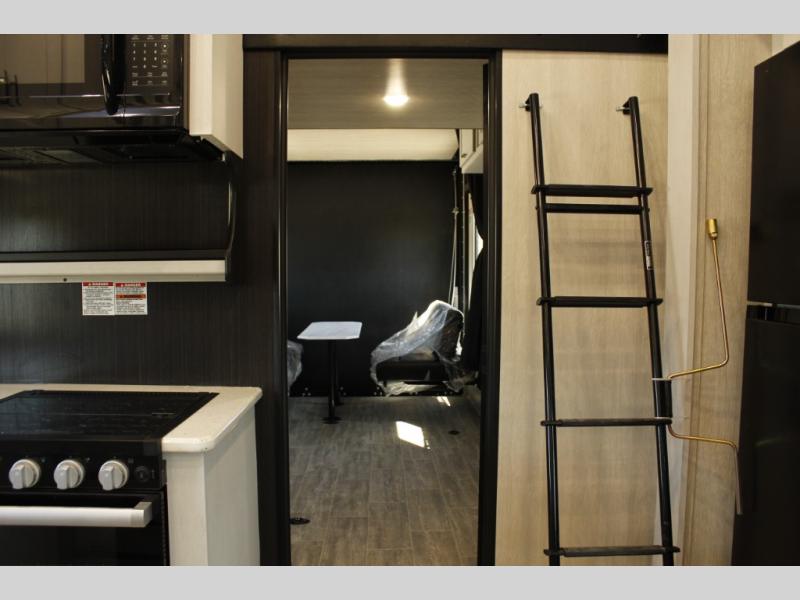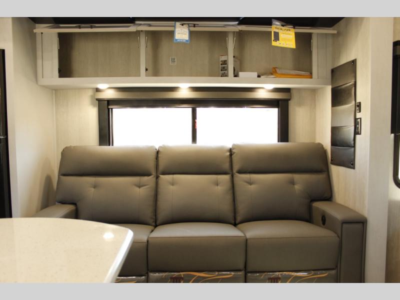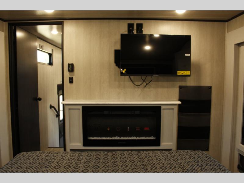 If you enjoy riding the trails and camping with more friends and family, this toy hauler is for you! The 16' 0" cargo length in the separate garage will provide plenty of space for your toys and your guests. They can sleep on the opposing dinette or on the power queen bed and loft. The combined kitchen and living area includes a sofa slide out, a second sofa, plus a U-shaped kitchen counter. There is also a fireplace and 50" TV within the entertainment center so you can enjoy movie nights. A full bath with a shower skylight and power vent will allow you to clean up each day, and the front private bedroom is sure to make you feel at home. There is an RV king bed, dual opposing slides with wardrobes and vanities to keep all your belongings organized plus more storage space!