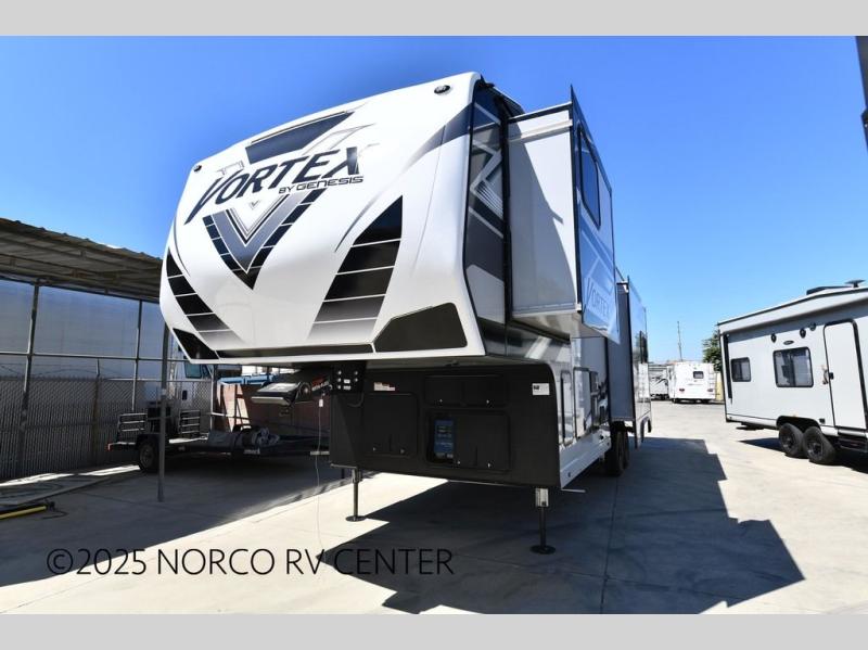 Your camping life is going to be a blast with the Genesis Supreme Vortex toy hauler! The innovative floorplans provide you with everything you need for memorable trips. These models can withstand the extreme heat of the desert, while still keeping you comfortable inside. There are kitchen and bath amenities inside, along with ample storage space for your belongings. With a wide variety of floorplans to choose from, you're sure to find the Vortex that fits your needs best!