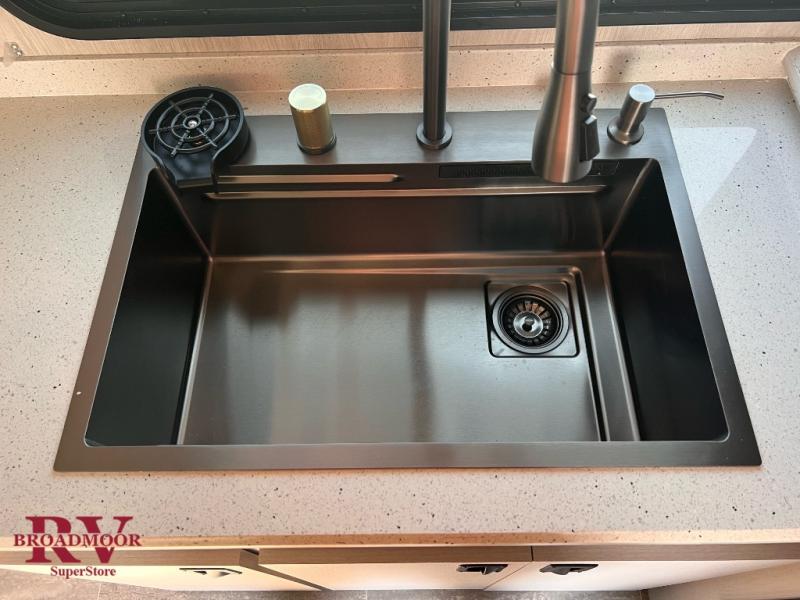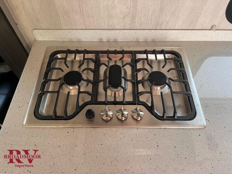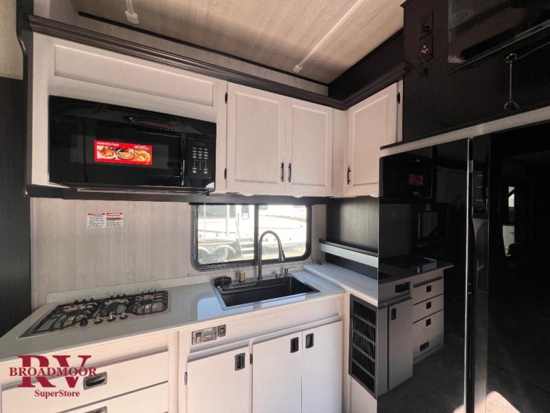 Your camping life is going to be a blast with the Genesis Supreme Vortex toy hauler! These work horses get the job done but also make it fun. You will be able to use the 40-gallon fuel station to gas up your toys when you come back from the trails, and the power awning with LED lights will give you protection as you use the exterior features. The 16" deluxe aluminum alloy wheels will get you to and from your destination with confidence, and the 30,000 or 35,000 BTU furnace will ensure that you don't freeze while you sleep on cool nights. You can keep power flowing with the 4.0kW generator with transfer switch, and you'll also enjoy the function and the style of the solid-surface countertops in the kitchen.