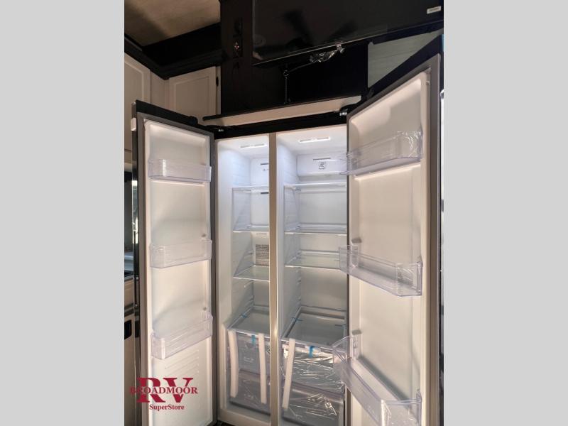 Optional Equipment Installed On This Unit: 6.0 Yamaha Generator, Hydraulic Jack, Living Room Sofa Slideout, Opposing Rear Power Dinette, 40" TV, 200W Solar w/ 1500W Pass Thru Inverter, 15.6CF Double Door Refrigerator, Central Vacuum System, Keyless Entry, EZ Flex Suspension, 2nd Grey Tank, Arctic Package, Tool Box
