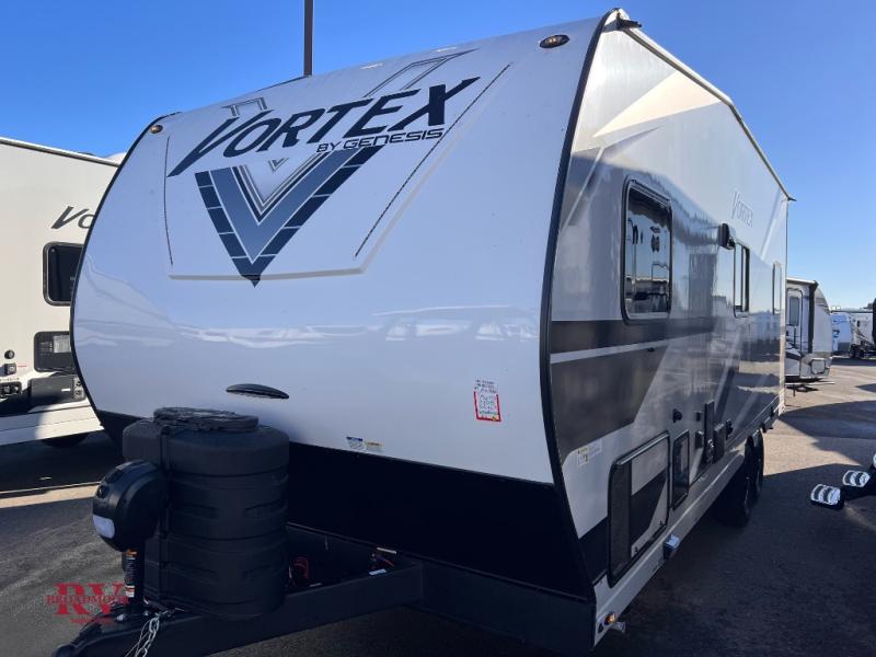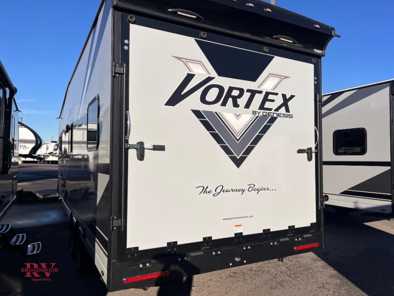 Get ready for adventure with the Vortex toy haulers by Genesis Supreme. The innovative floorplans provide you with everything you need for memorable trips. These models can withstand the extreme heat of the desert, while still keeping you comfortable inside. There are kitchen and bath amenities inside, along with ample storage space for your belongings. With a wide variety of floorplans to choose from, you're sure to find the Vortex that fits your needs best!