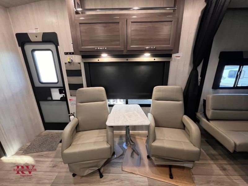 Optional Equipment Installed On This Unit: 4.5KW Yamaha Generator, Aluminum Wheels, Opposing Rear Power Dinette, Arctic Package, Patio Cables, 40 gallon Fuel Station, Exterior Premier Package, Interior Deluxe Package, Front Power Jack, Retractable Shower Door, High Gloss Fiberglass Sidewalls