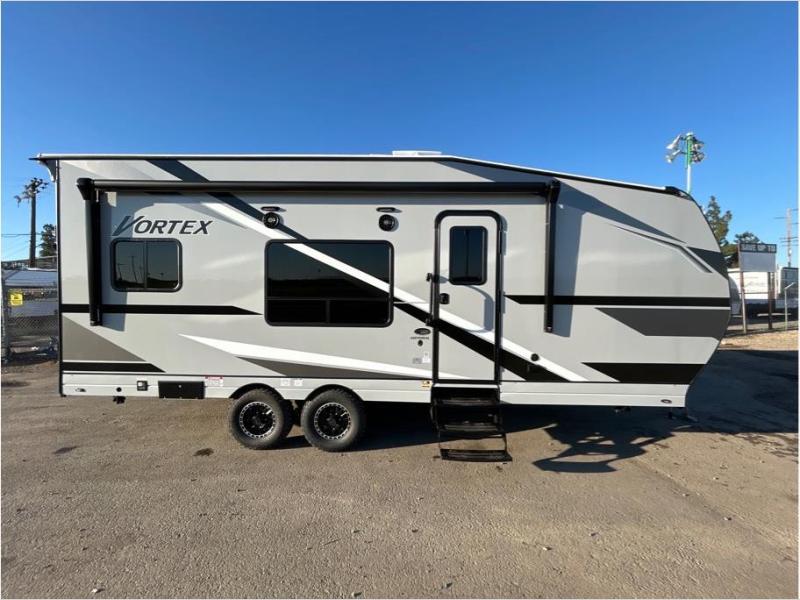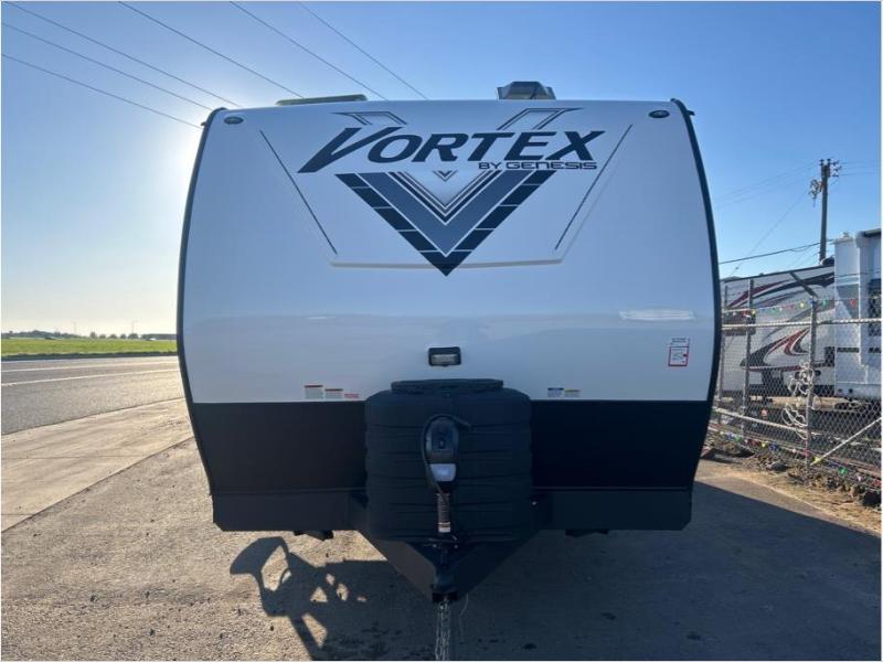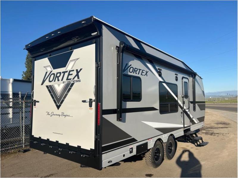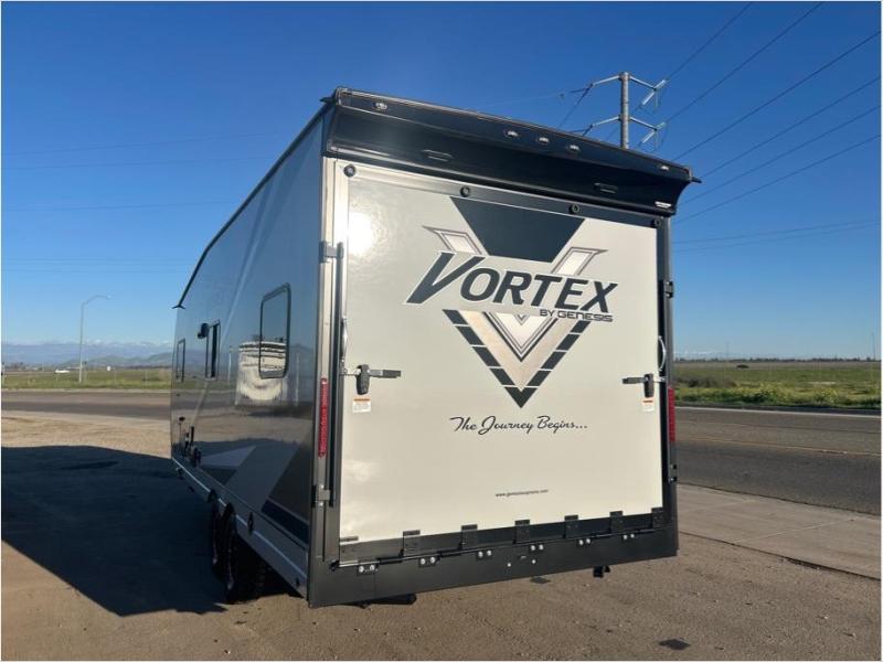 Get ready for adventure with the Vortex toy haulers by Genesis Supreme. The innovative floorplans provide you with everything you need for memorable trips. These models can withstand the extreme heat of the desert, while still keeping you comfortable inside. There are kitchen and bath amenities inside, along with ample storage space for your belongings. With a wide variety of floorplans to choose from, you're sure to find the Vortex that fits your needs best!