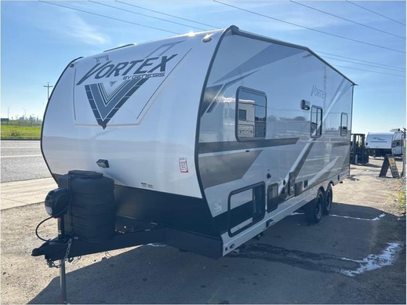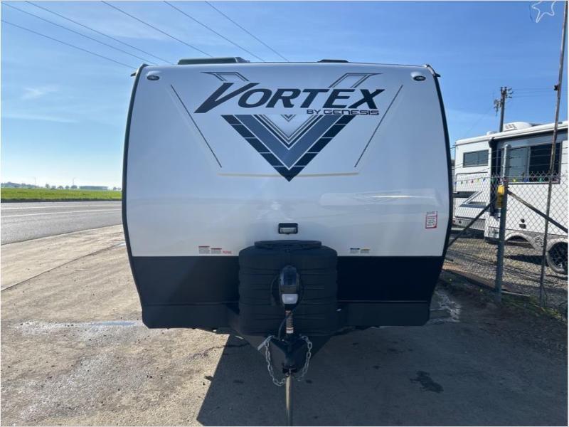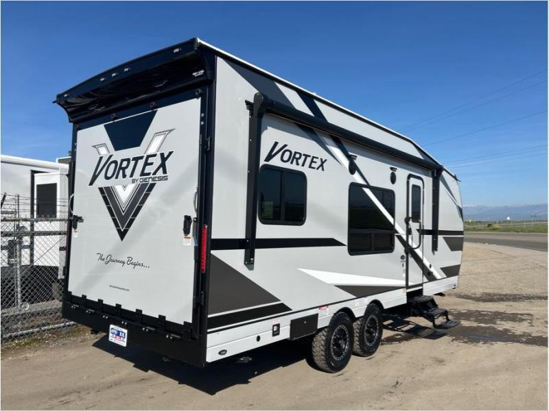 Get ready for adventure with the Vortex toy haulers by Genesis Supreme. The innovative floorplans provide you with everything you need for memorable trips. These models can withstand the extreme heat of the desert, while still keeping you comfortable inside. There are kitchen and bath amenities inside, along with ample storage space for your belongings. With a wide variety of floorplans to choose from, you're sure to find the Vortex that fits your needs best!