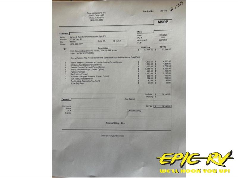 Genesis Supreme Vortex toy hauler V2415CRXL highlights: