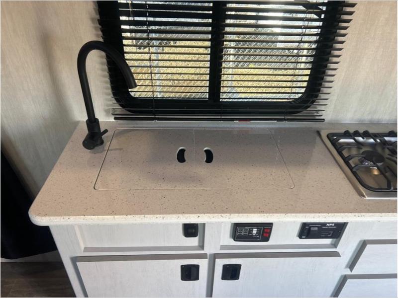 Your camping life is going to be a blast with the Genesis Supreme Vortex toy hauler! These work horses get the job done but also make it fun. They are built with white fiberglass laminated aluminum-framed sidewalls and a 8" I beam frame so you can be sure they will hold up. The manual awning with LED lights will give you protection as you use the exterior features. The 15" black steel wheels will get you to and from your destination with confidence, and the furnace will ensure that you don't freeze while you sleep on cool nights. You can keep power flowing with the optional 4.0kW generator with transfer switch, and you'll also enjoy the function and the style of the solid-surface countertops in the kitchen.
