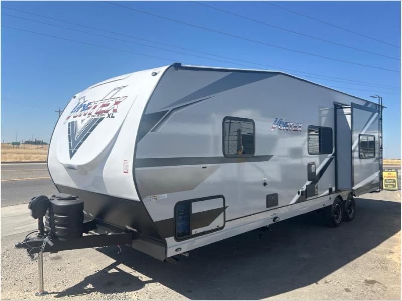 Get ready for adventure with the Vortex toy haulers by Genesis Supreme. The innovative floorplans provide you with everything you need for memorable trips. These models can withstand the extreme heat of the desert, while still keeping you comfortable inside. There are kitchen and bath amenities inside, along with ample storage space for your belongings. With a wide variety of floorplans to choose from, you're sure to find the Vortex that fits your needs best!