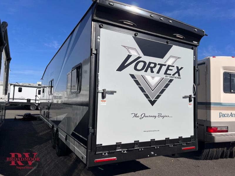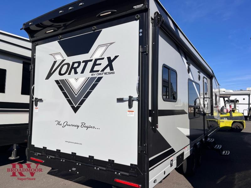 Get ready for adventure with the Vortex toy haulers by Genesis Supreme. The innovative floorplans provide you with everything you need for memorable trips. These models can withstand the extreme heat of the desert, while still keeping you comfortable inside. There are kitchen and bath amenities inside, along with ample storage space for your belongings. With a wide variety of floorplans to choose from, you're sure to find the Vortex that fits your needs best!
