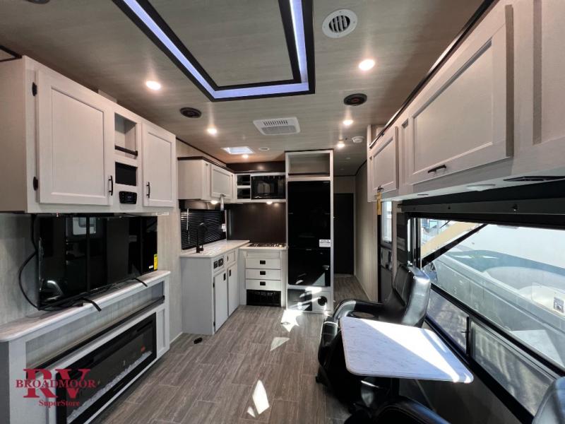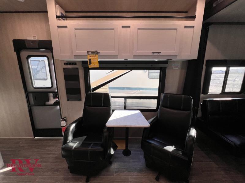 Optional Equipment Installed On This Unit: Yamaha Generator, Fuel Station, Axle Upgrade, Fiberglass Front Cap, King Mattress, Opposing Rear Power Dinette, Exterior Premier Package, Interior Deluxe Package, Arctic Package, Patio Cable, 12V Air Compressor, Fiberglass Sidewalls, Wifi Ready