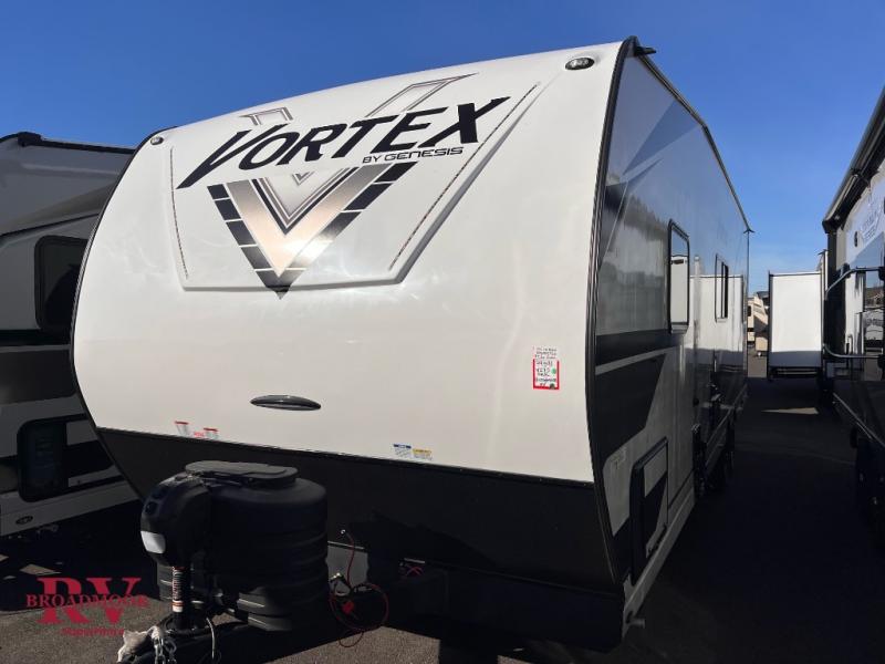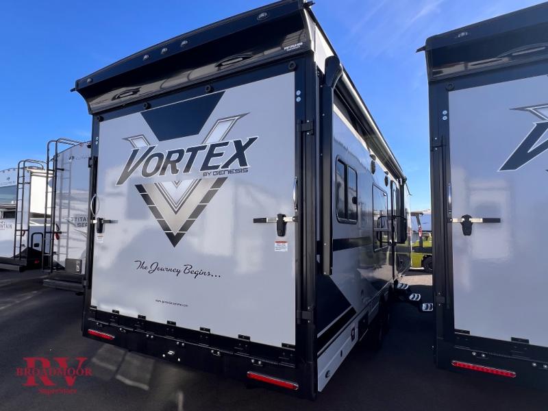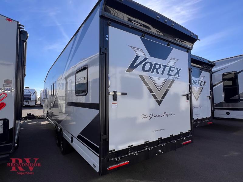 Get ready for adventure with the Vortex toy haulers by Genesis Supreme. The innovative floorplans provide you with everything you need for memorable trips. These models can withstand the extreme heat of the desert, while still keeping you comfortable inside. There are kitchen and bath amenities inside, along with ample storage space for your belongings. With a wide variety of floorplans to choose from, you're sure to find the Vortex that fits your needs best!