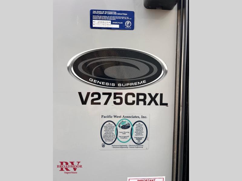 New 2026 Genesis Supreme Vortex V275CRXL Toy Hauler Travel Trailer