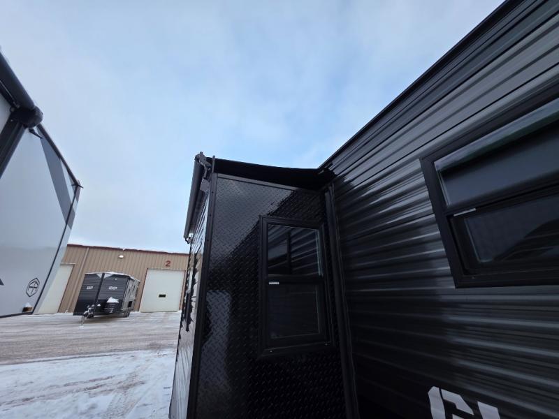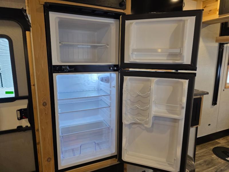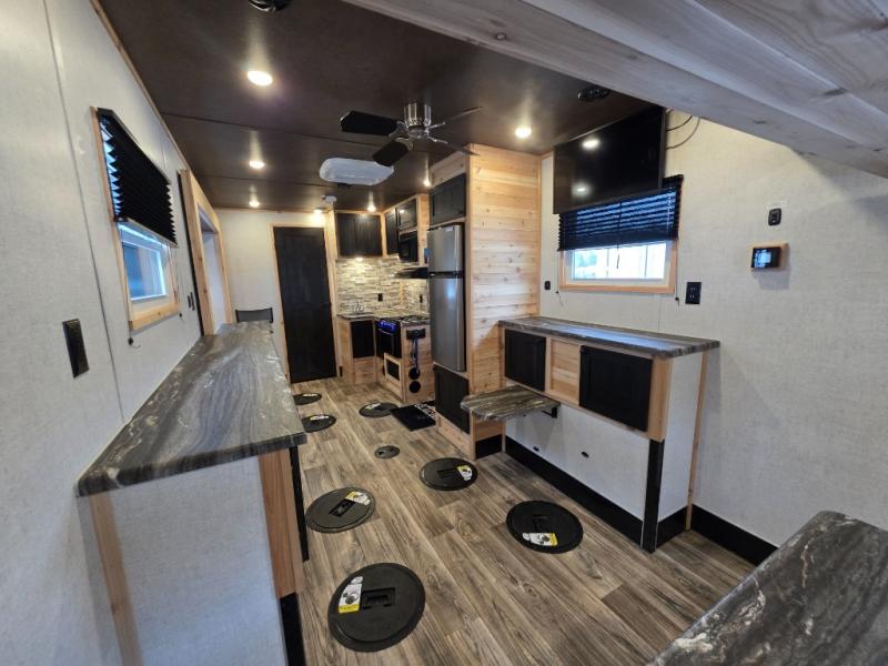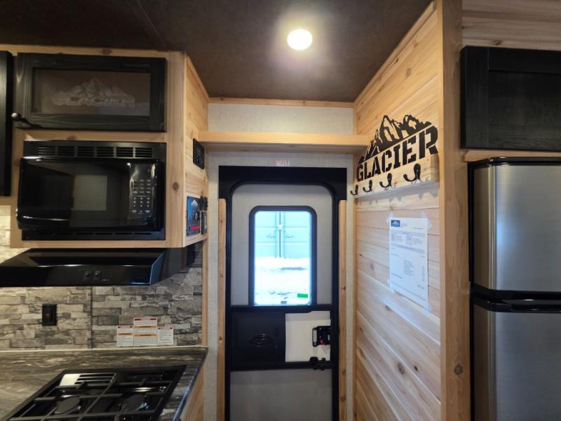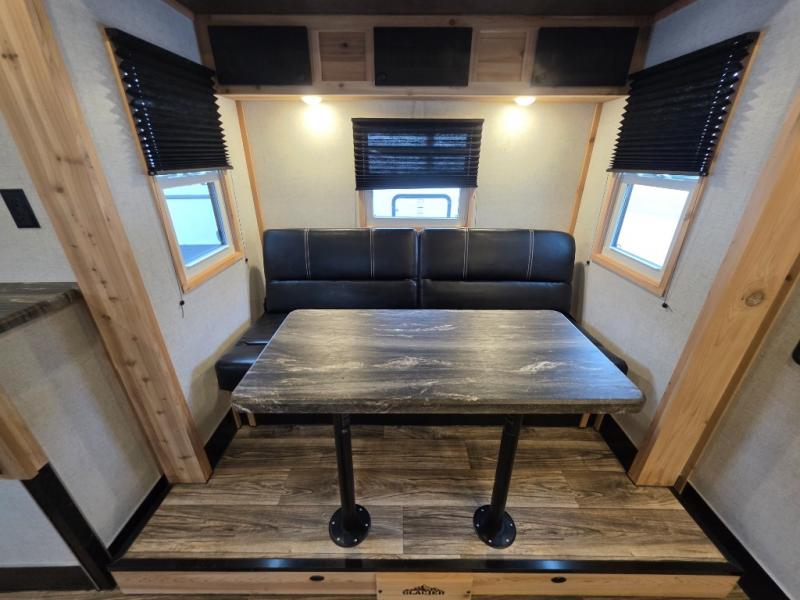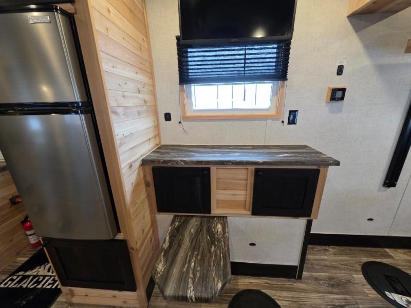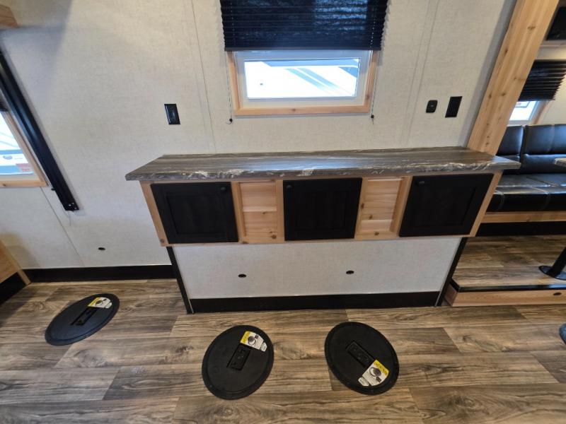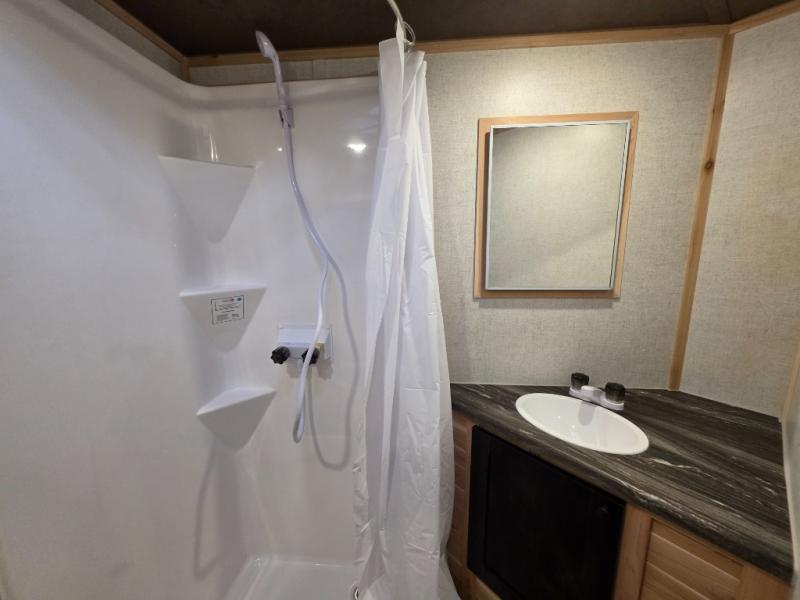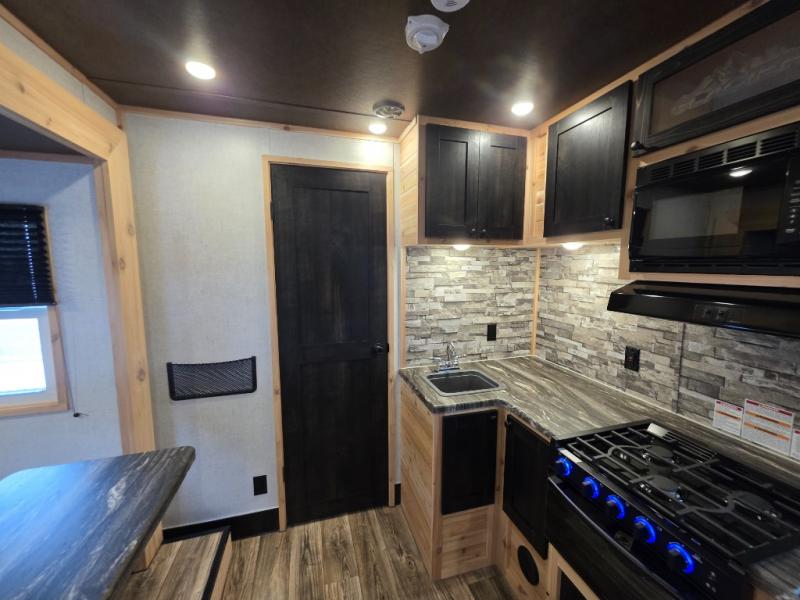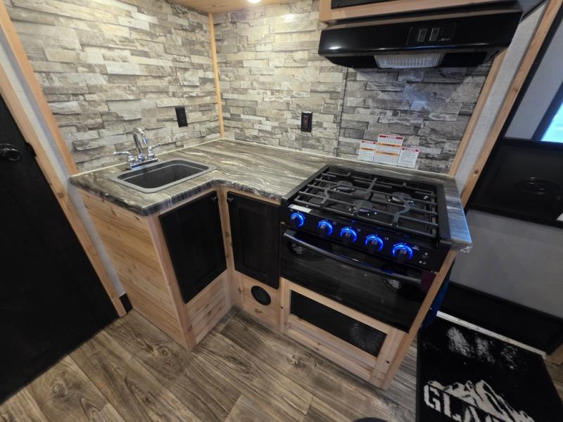 After fishing from one of the ice holes, you can make dinner on the three-burner range with an oven, grab your drinks from the 4.5-cu. ft. 12V refrigerator and dine at sofa with a table in the rear. Everyone can take turns getting cleaned up in the front full bathroom before retiring to the sofas and flip bunk. This model also includes overhead cabinets for storage, a microwave oven above the range, a 30k BTU forced air furnace, and many more stand-out features.