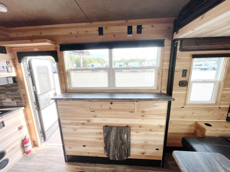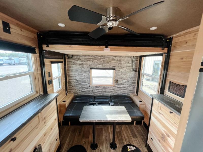 Six ice holes with lights, two bunk beds, and furniture to relax and dine on are calling you to the perfect spot for the weekend. You will appreciate the forced-air furnace during the cooler months and the non-ducted A/C when it gets a little too hot inside. The cook can make meals on the three-burner range with an oven, store leftovers in the 4.5-cu. ft. 12V refrigerator, and there is dining space on the rear sofa with a table. The front full bathroom will allow you to stay inside longer unless you want to relax under the power awning outside, and you will find storage throughout in the overhead cabinets, on the countertops, and inside the bathroom.