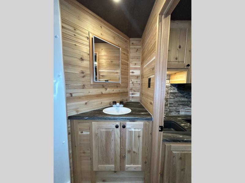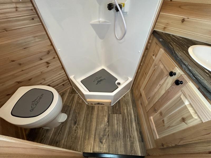 Each ice house by Glacier Ice House is built tough so you can enjoy enjoy fishing on the lake for years to come. The stronger, more resilient axle design is capable of handling heavier loads, and the trussed roofing system is one of the strongest on the market. There is interior and exterior LED lighting to keep your spaces well lit, plus high quality cedar cabinetry. Each ice house also features RV windows, a hand crank system, and a radiant barrier to withstand the cold temperatures!