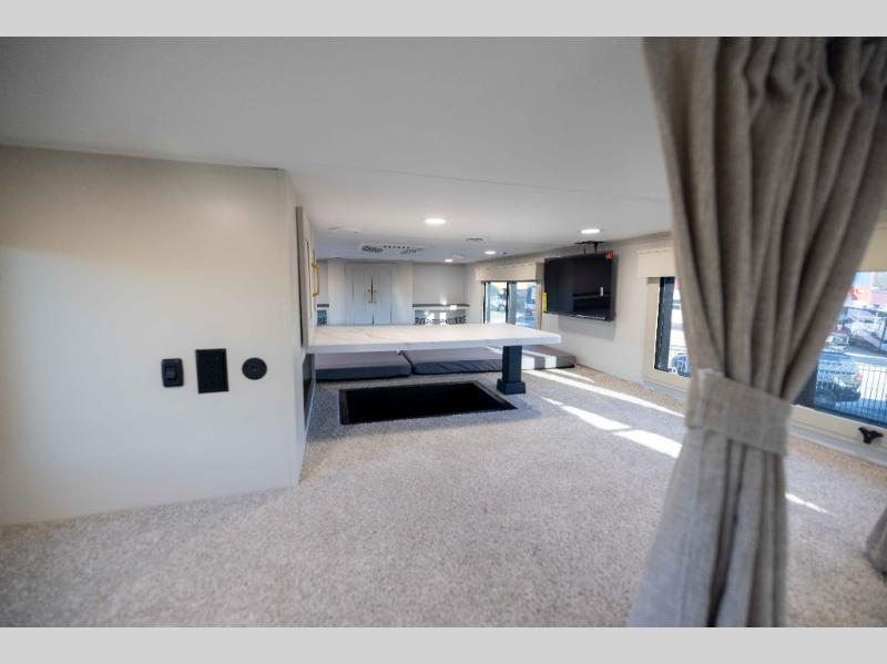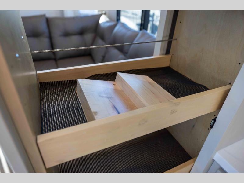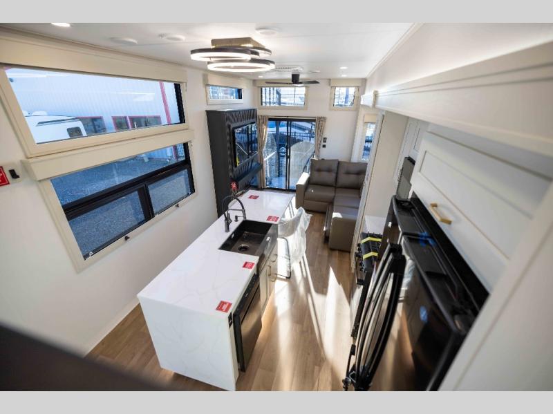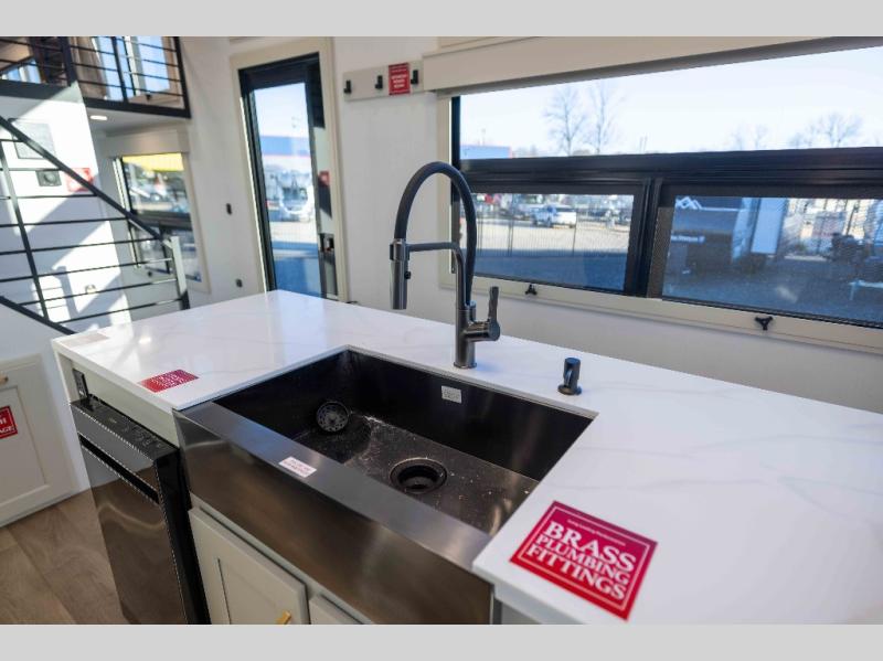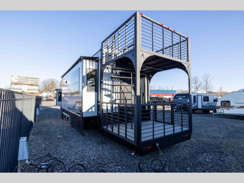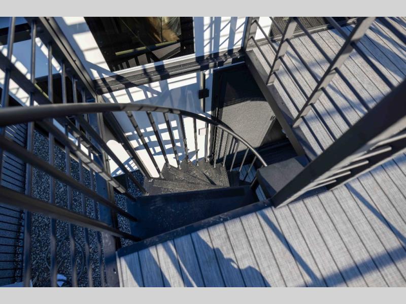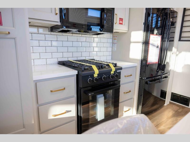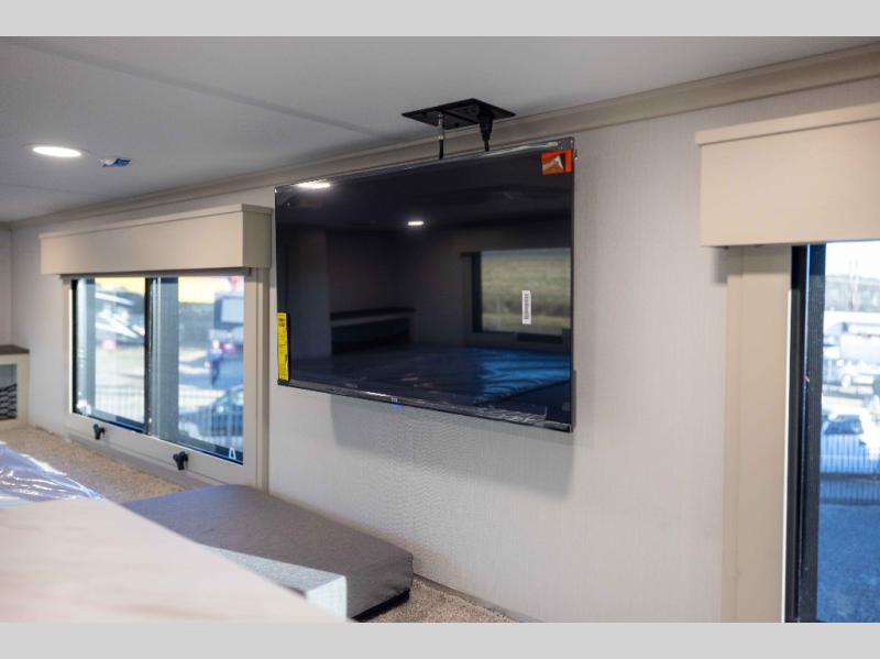 You'll fall in love with this spacious destination trailer that can sleep six each night! With dual entry doors, you can enter in through the rear deck that includes a lower level for gathering, and an observation deck to take in the stars! The other entry door leads into the combined kitchen and living room that includes a spacious kitchen island with a dishwasher, a pull-out pantry, an 18.6 cu. ft. refrigerator and an L-shaped sofa with a trundle bed. There is also an entertainment wall with smart storage and sliding doors that go out to the rear deck. A set of stairs leads to the loft with a queen-size sleeping pad, ample storage space, plus a table with a foot nook so you can put the table away when not in use. Back downstairs, a full bath will let you freshen up each day and a front private bedroom with a king bed slide is sure to bring comfort. There is also storage space for your things, a telescoping TV, plus washer and dryer prep if you plan to add these appliances!