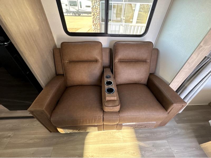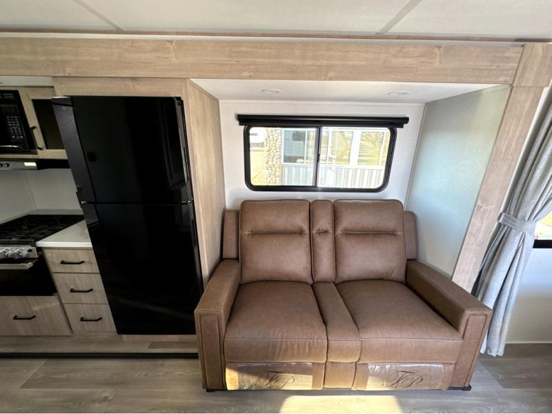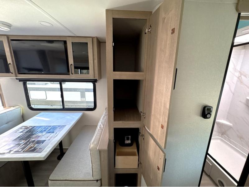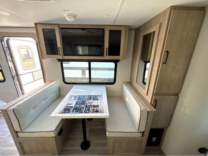 This Imagine XLS travel trailer has theater seating and a booth dinette that you can use any time you need a little break from the outdoors. If you want to come in and grab a coffee, put together a puzzle, or work on your itinerary for the week, just put up your feet and relax. You could even switch on the LED HDTV if you want a little entertainment. The front queen-size bed has a privacy curtain that you can draw to create a semi-private bedroom, and in the back of the trailer you will find the rest of your amenities, like the kitchen and the bathroom. The large slide makes it easy to enjoy spending your time indoors, but if you do want to get back outside, you can sit underneath the 18' electric awning for some shade.