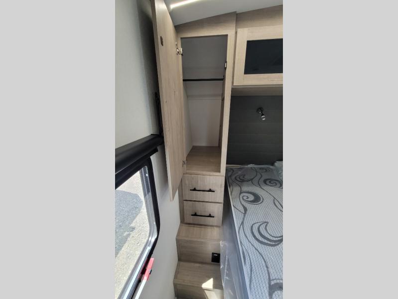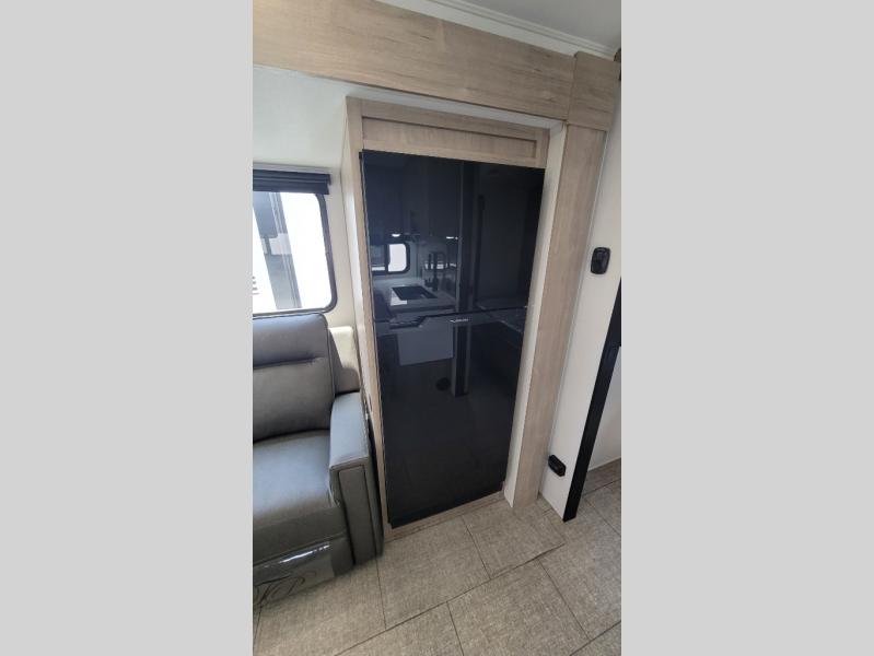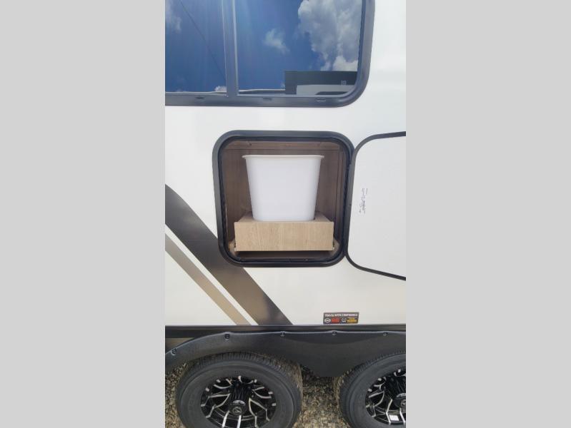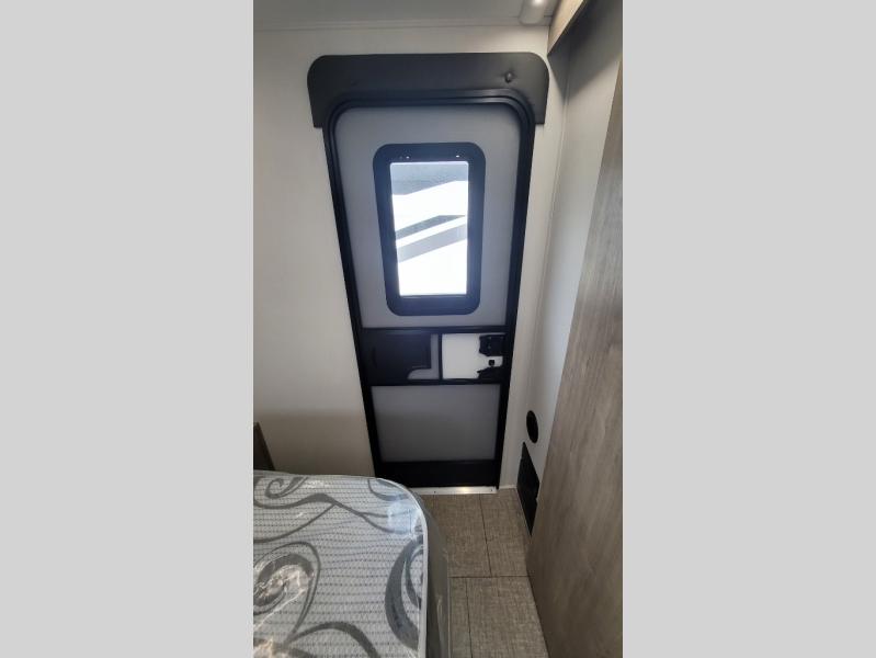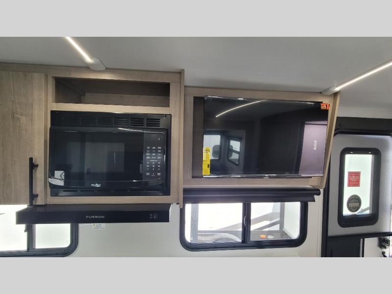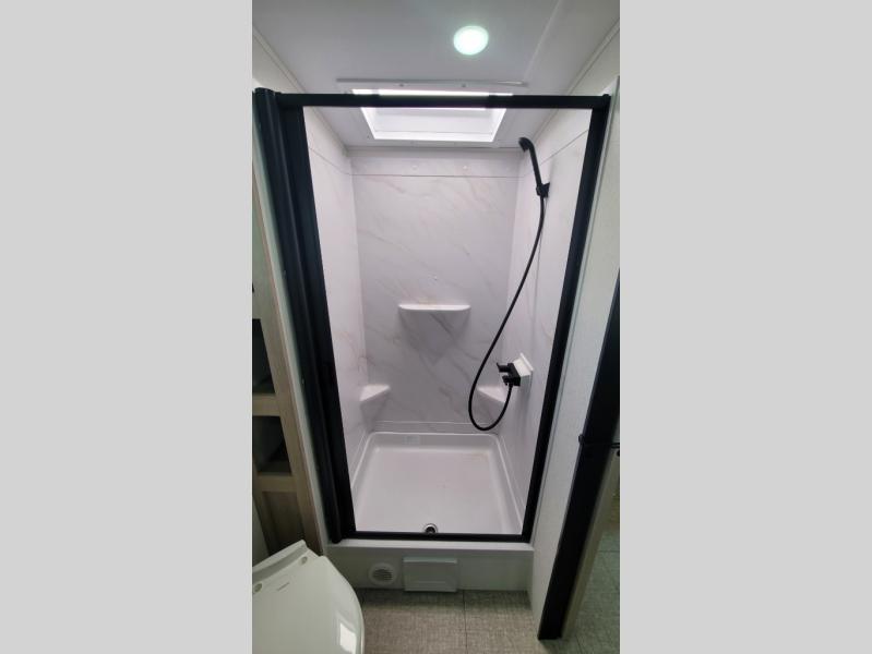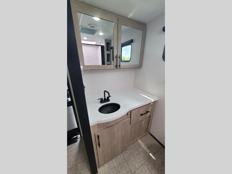 Escape to adventure with this fantastic travel trailer! The private bedroom features a plush 60" x 80" queen bed, spacious wardrobe, and TV prep for entertainment. The kitchen area is fitted with a pull-out pantry, 10 cu. refrigerator, microwave, and three-burner cooktop for gourmet meal prep. Enjoy extra counter space with the flip-up countertop extension, ideal for easy and comfortable cooking. Gather with family and friends at the theater dinette, featuring an LED HDTV for movie nights and game days after that, you can take a relaxing bath in the full rear bathroom, with ample storage. Stay organized on the go with pass-thru storage, 20” x 20” baggage door/trash can storage, and a spacious interior. Enjoy outdoor living under the shade of the 18’ awning, perfect for weekend getaways, or outdoor activities for the adventure-seekers.