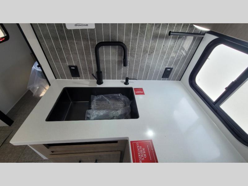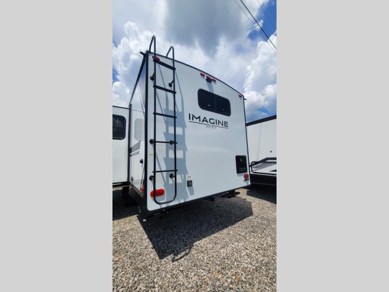 Just imagine leaving the world behind and secluding yourself away with your favorite people in your Grand Design Imagine travel trailer! The Imagine has been designed to enjoy extended season camping and includes a high-capacity furnace, a heated and enclosed underbelly with suspended tanks, a designated heat duct to the subfloor, and a high-density roof insulation with attic vent. You'll have maximum head room on the interior with 81" radius ceilings, and large panoramic windows to let in natural lighting. The exclusive drop-frame pass-through storage compartment is going to allow you to bring along lots of equipment, and the universal docking station is an all-in-one location for utilities and hook-ups. You'll also have oversized tank capacities so that you can fill and empty your tanks less often.