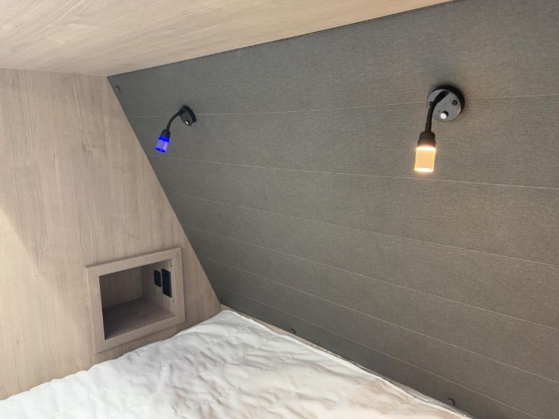 - Private Front Bedroom – Features a true 60" x 80" queen bed, dual wardrobes, and TV prep