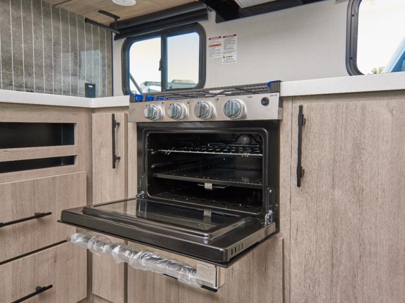 Step inside and enjoy a private front bedroom with a plush 60" x 80" queen bed, large wardrobe, and TV prep for entertainment. The gourmet kitchen includes a pull-out pantry, 10 cu. ft. refrigerator, microwave, and three-burner cooktop, plus a flip-up countertop extension for extra prep space. Whether you're cooking, relaxing, or entertaining, the Imagine 2300MK makes it effortless.