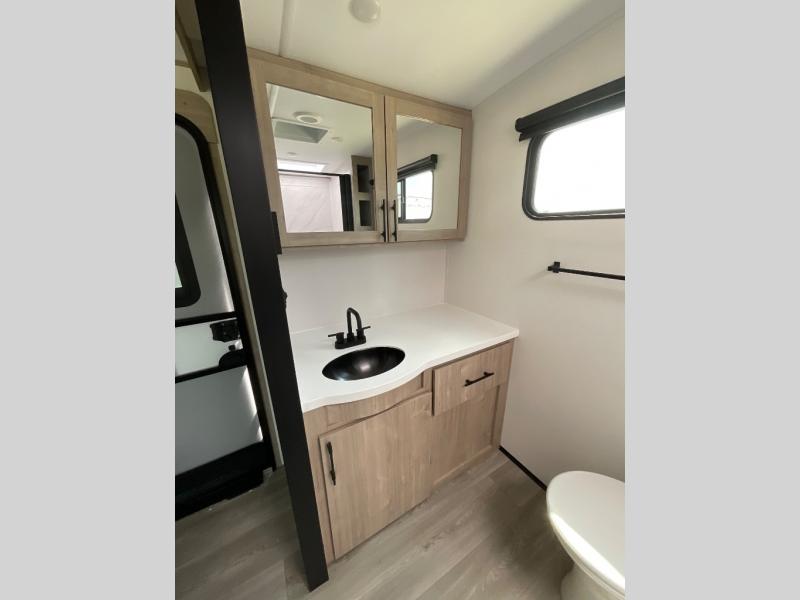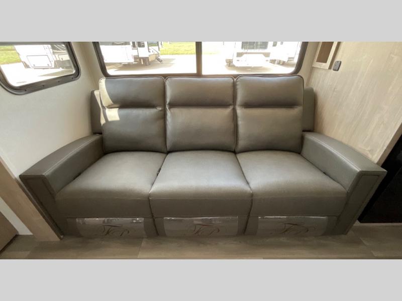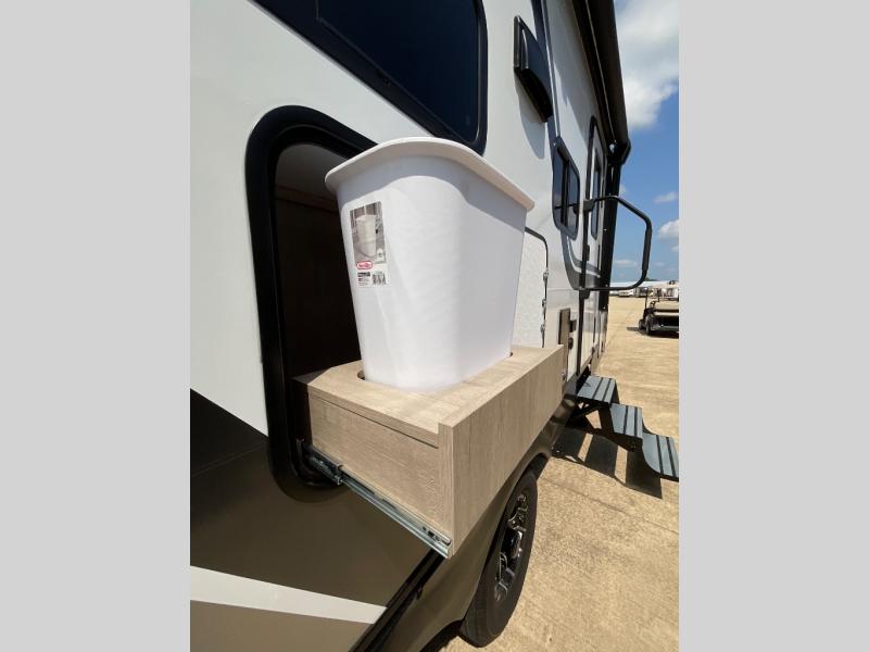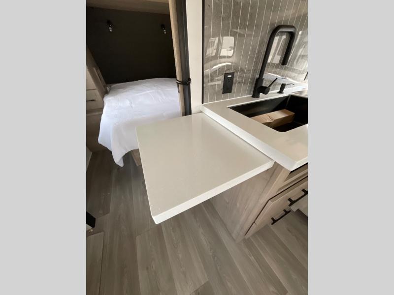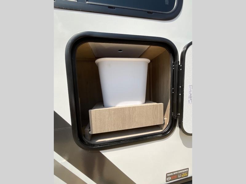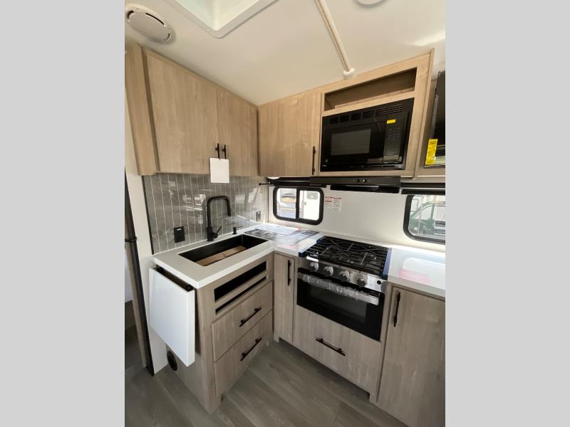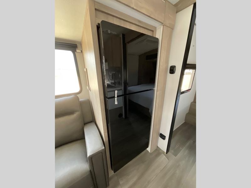 Escape to adventure with this fantastic travel trailer! The private bedroom features a plush 60" x 80" queen bed, spacious wardrobe, and TV prep for entertainment. The kitchen area is fitted with a pull-out pantry, 10 cu. refrigerator, microwave, and three-burner cooktop for gourmet meal prep. Enjoy extra counter space with the flip-up countertop extension, ideal for easy and comfortable cooking. Gather with family and friends at the theater dinette, featuring an LED HDTV for movie nights and game days after that, you can take a relaxing bath in the full rear bathroom, with ample storage. Stay organized on the go with pass-thru storage, 20” x 20” baggage door/trash can storage, and a spacious interior. Enjoy outdoor living under the shade of the 18’ awning, perfect for weekend getaways, or outdoor activities for the adventure-seekers.