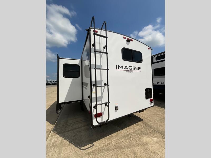 Just imagine leaving the world behind and secluding yourself away with your favorite people in your Grand Design Imagine travel trailer! The Imagine has been designed to enjoy extended season camping and includes a high-capacity furnace, a heated and enclosed underbelly with suspended tanks, a designated heat duct to the subfloor, and a high-density roof insulation with attic vent. You'll have maximum head room on the interior with 81" radius ceilings, and large panoramic windows to let in natural lighting. The exclusive drop-frame pass-through storage compartment is going to allow you to bring along lots of equipment, and the universal docking station is an all-in-one location for utilities and hook-ups. You'll also have oversized tank capacities so that you can fill and empty your tanks less often.