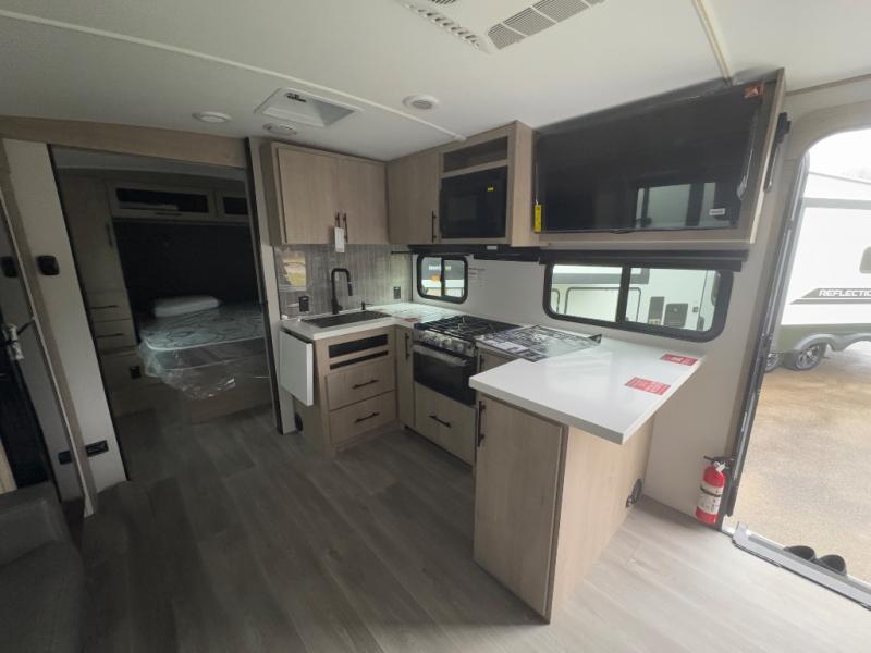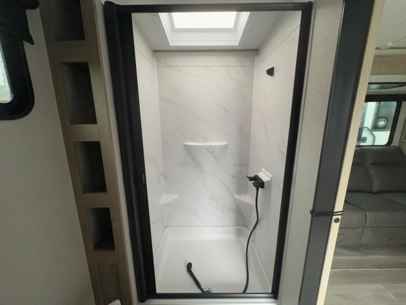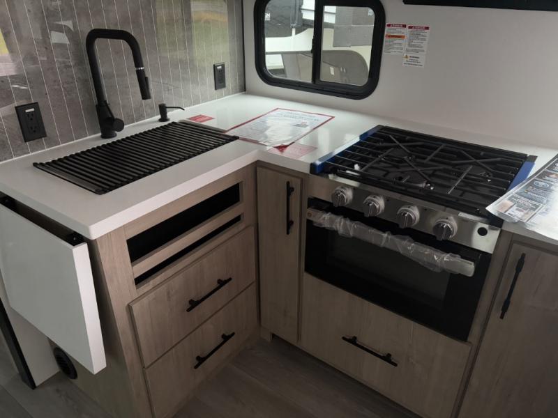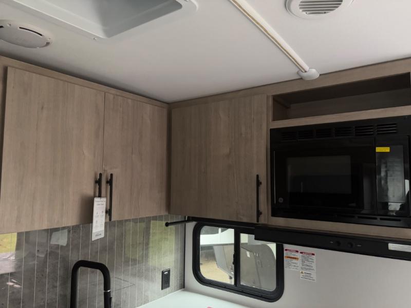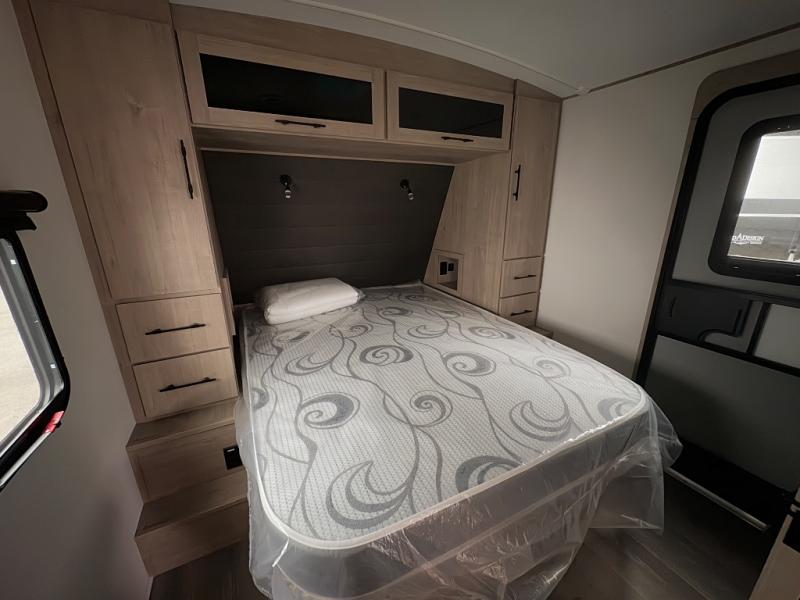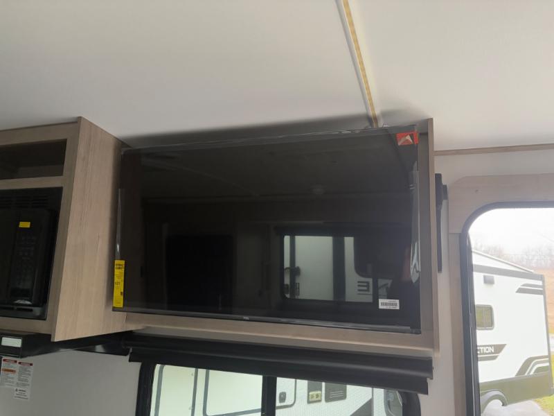 Escape to adventure with this fantastic travel trailer! The private bedroom features a plush 60" x 80" queen bed, spacious wardrobe, and TV prep for entertainment. The kitchen area is fitted with a pull-out pantry, 10 cu. refrigerator, microwave, and three-burner cooktop for gourmet meal prep. Enjoy extra counter space with the flip-up countertop extension, ideal for easy and comfortable cooking. Gather with family and friends at the theater dinette, featuring an LED HDTV for movie nights and game days after that, you can take a relaxing bath in the full rear bathroom, with ample storage. Stay organized on the go with pass-thru storage, 20” x 20” baggage door/trash can storage, and a spacious interior. Enjoy outdoor living under the shade of the 18’ awning, perfect for weekend getaways, or outdoor activities for the adventure-seekers.