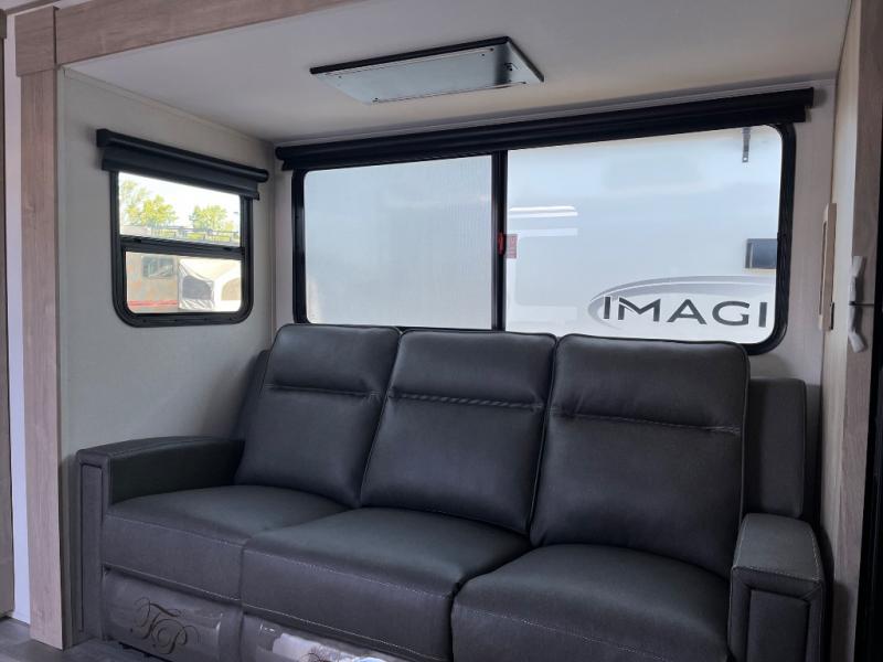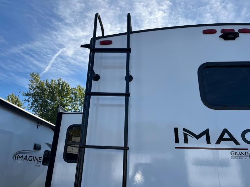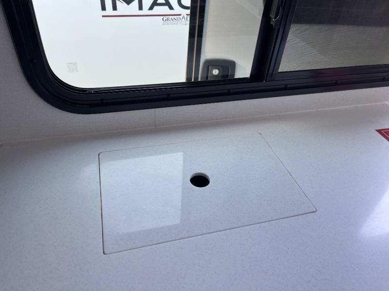 Just imagine leaving the world behind and secluding yourself away with your favorite people in your Grand Design Imagine travel trailer! The Imagine has been designed to enjoy extended season camping and includes a high-capacity furnace, a heated and enclosed underbelly with suspended tanks, a designated heat duct to the subfloor, and a high-density roof insulation with attic vent. You'll have maximum head room on the interior with 81" radius ceilings, and large panoramic windows to let in natural lighting. The exclusive drop-frame pass-through storage compartment is going to allow you to bring along lots of equipment, and the universal docking station is an all-in-one location for utilities and hook-ups. You'll also have oversized tank capacities so that you can fill and empty your tanks less often.