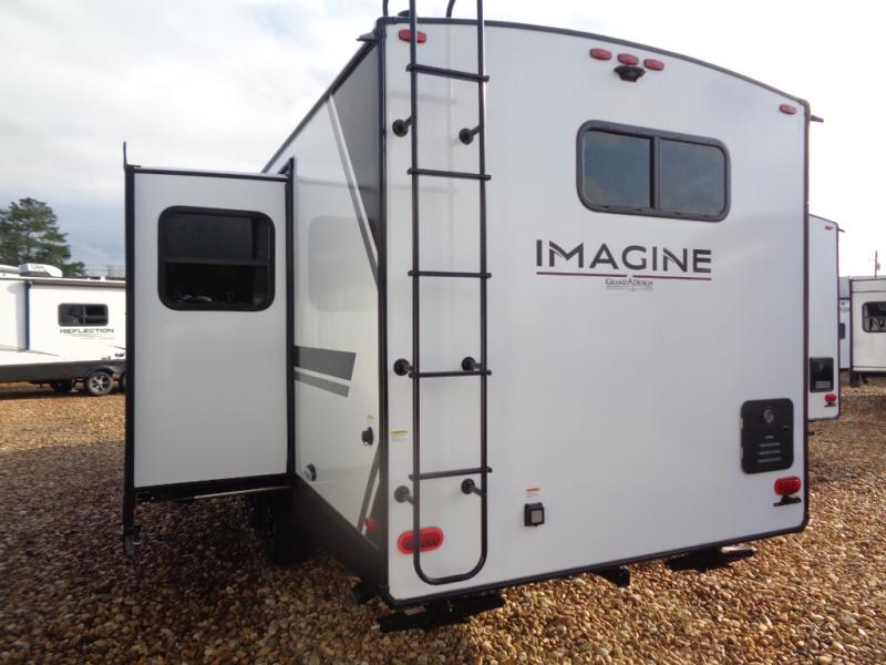 Just imagine leaving the world behind and secluding yourself away with your favorite people in your Grand Design Imagine travel trailer! The Imagine has been designed to enjoy extended season camping and includes a high-capacity furnace, a heated and enclosed underbelly with suspended tanks, a designated heat duct to the subfloor, and a high-density roof insulation with attic vent. You'll have maximum head room on the interior with 81" radius ceilings, and large panoramic windows to let in natural lighting. The exclusive drop-frame pass-through storage compartment is going to allow you to bring along lots of equipment, and the universal docking station is an all-in-one location for utilities and hook-ups. You'll also have oversized tank capacities so that you can fill and empty your tanks less often.