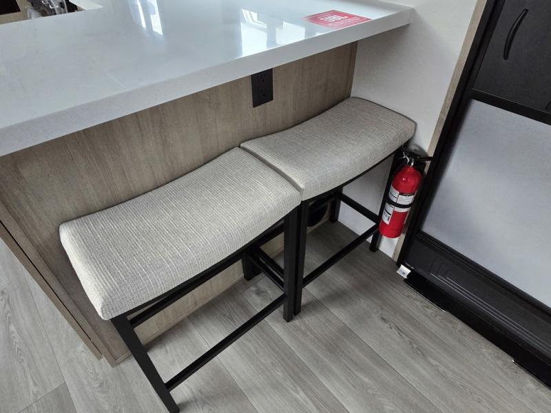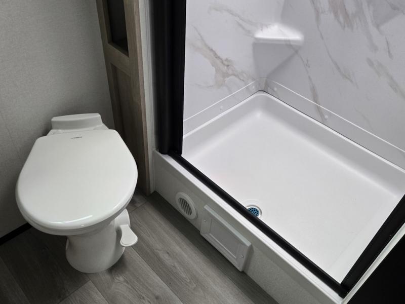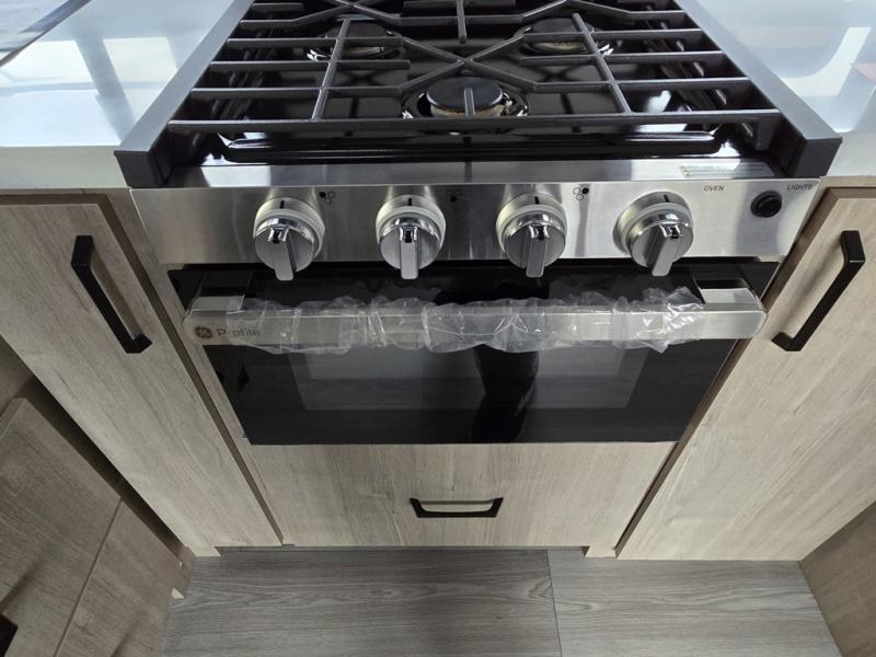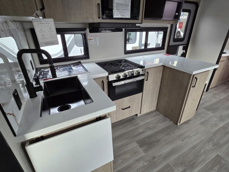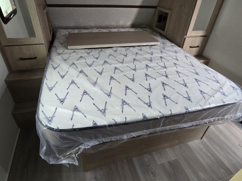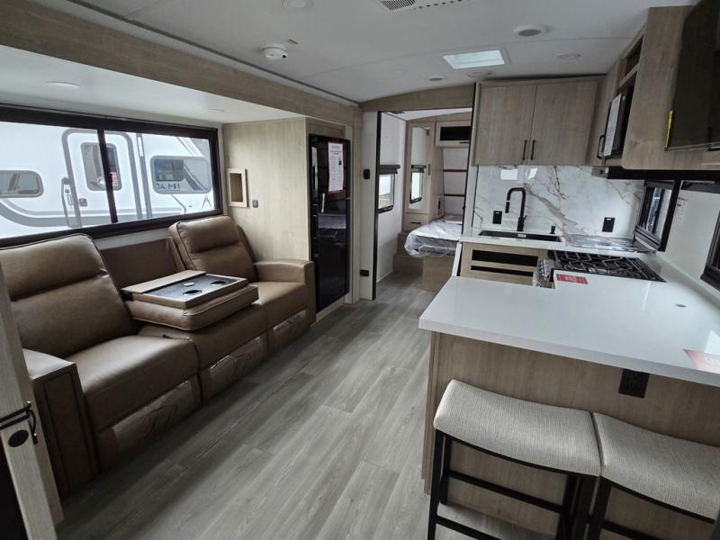 Escape to adventure with this fantastic travel trailer! The private bedroom features a plush 60" x 80" queen bed, spacious wardrobe, and TV prep for entertainment. The kitchen area is fitted with a pull-out pantry, 10 cu. refrigerator, microwave, and three-burner cooktop for gourmet meal prep. Enjoy extra counter space with the flip-up countertop extension, ideal for easy and comfortable cooking. Gather with family and friends at the theater dinette, featuring an LED HDTV for movie nights and game days after that, you can take a relaxing bath in the full rear bathroom, with ample storage. Stay organized on the go with pass-thru storage, 20” x 20” baggage door/trash can storage, and a spacious interior. Enjoy outdoor living under the shade of the 18’ awning, perfect for weekend getaways, or outdoor activities for the adventure-seekers.