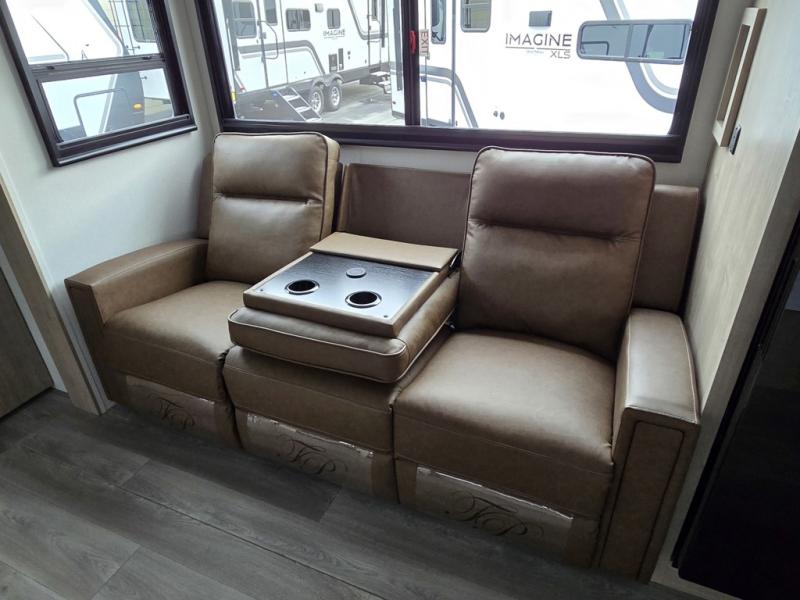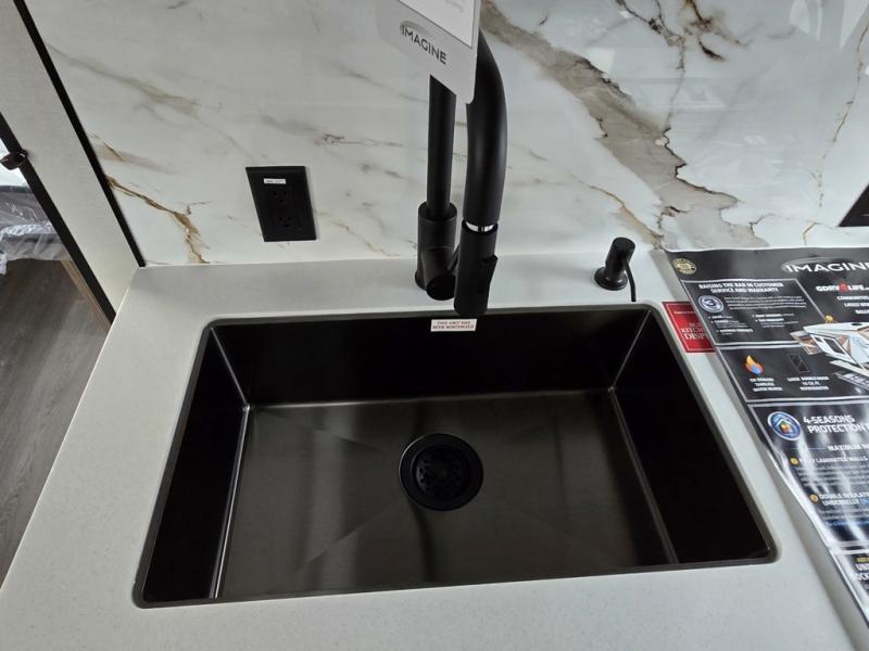 Just imagine leaving the world behind and secluding yourself away with your favorite people in your Grand Design Imagine travel trailer! The Imagine has been designed to enjoy extended season camping and includes a high-capacity furnace, a heated and enclosed underbelly with suspended tanks, a designated heat duct to the subfloor, and a high-density roof insulation with attic vent. You'll have maximum head room on the interior with 81" radius ceilings, and large panoramic windows to let in natural lighting. The exclusive drop-frame pass-through storage compartment is going to allow you to bring along lots of equipment, and the universal docking station is an all-in-one location for utilities and hook-ups. You'll also have oversized tank capacities so that you can fill and empty your tanks less often.