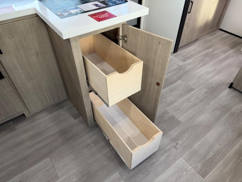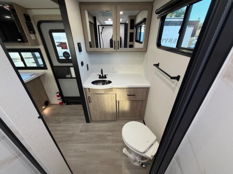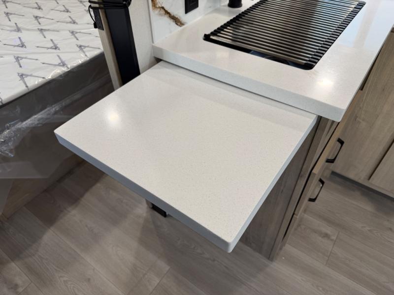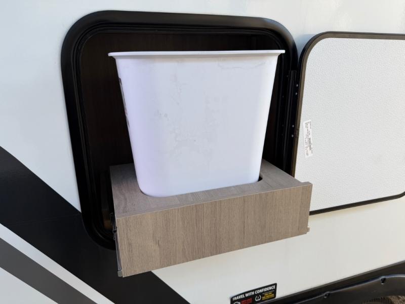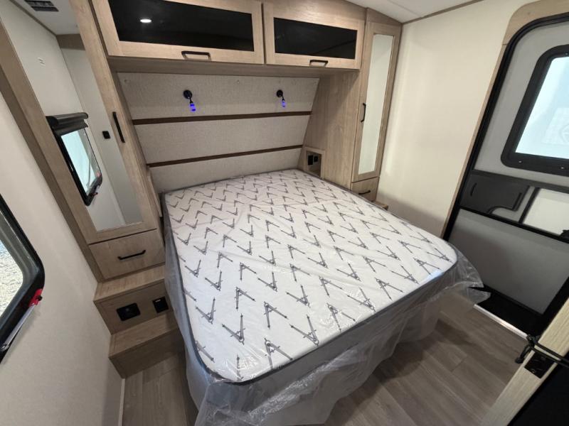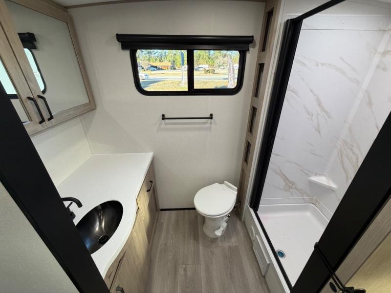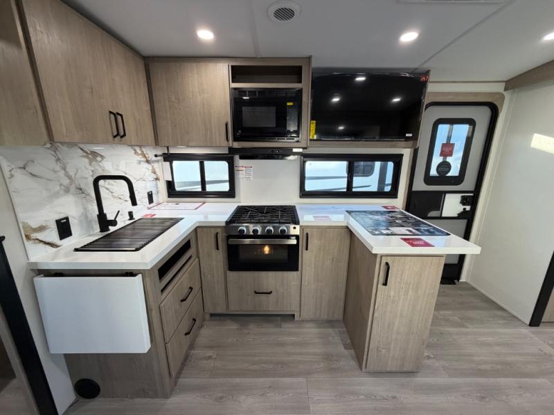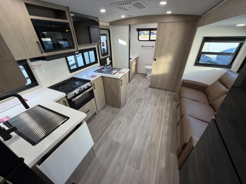 Escape to adventure with this fantastic travel trailer! The private bedroom features a plush 60" x 80" queen bed, spacious wardrobe, and TV prep for entertainment. The kitchen area is fitted with a pull-out pantry, 10 cu. refrigerator, microwave, and three-burner cooktop for gourmet meal prep. Enjoy extra counter space with the flip-up countertop extension, ideal for easy and comfortable cooking. Gather with family and friends at the theater dinette, featuring an LED HDTV for movie nights and game days after that, you can take a relaxing bath in the full rear bathroom, with ample storage. Stay organized on the go with pass-thru storage, 20” x 20” baggage door/trash can storage, and a spacious interior. Enjoy outdoor living under the shade of the 18’ awning, perfect for weekend getaways, or outdoor activities for the adventure-seekers.