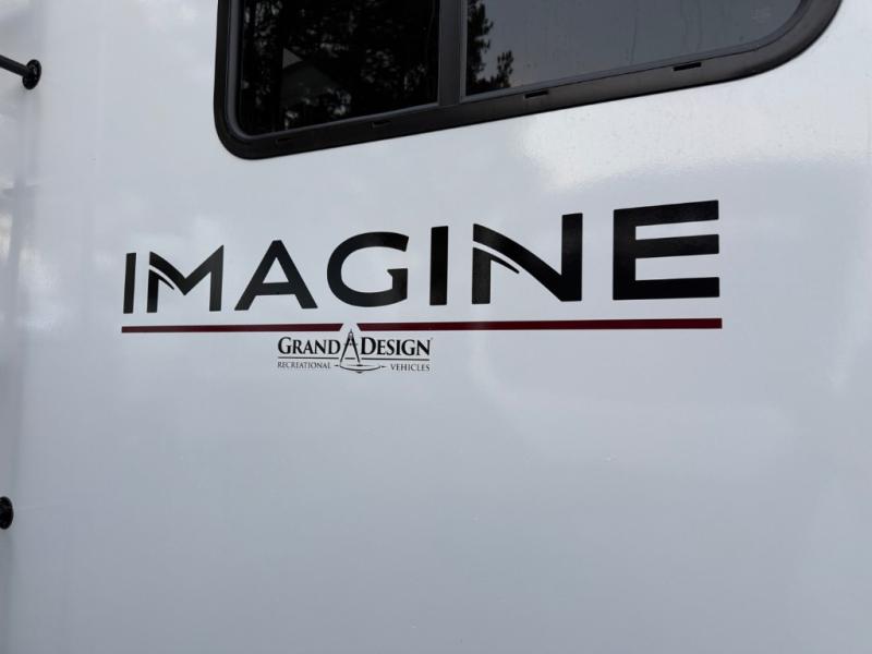 Just imagine leaving the world behind and secluding yourself away with your favorite people in your Grand Design Imagine travel trailer! The Imagine has been designed to enjoy extended season camping and includes a high-capacity furnace, a heated and enclosed underbelly with suspended tanks, a designated heat duct to the subfloor, and a high-density roof insulation with attic vent. You'll have maximum head room on the interior with 81" radius ceilings, and large panoramic windows to let in natural lighting. The exclusive drop-frame pass-through storage compartment is going to allow you to bring along lots of equipment, and the universal docking station is an all-in-one location for utilities and hook-ups. You'll also have oversized tank capacities so that you can fill and empty your tanks less often.
