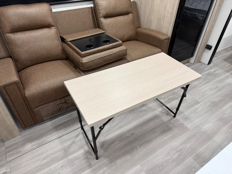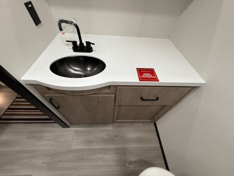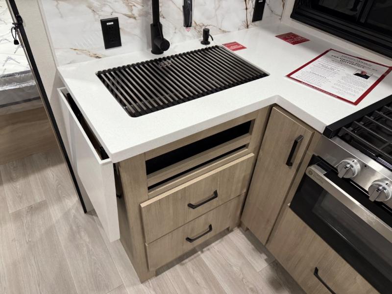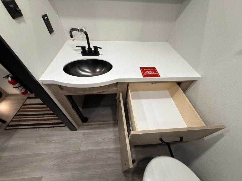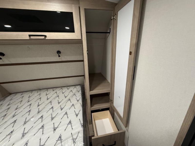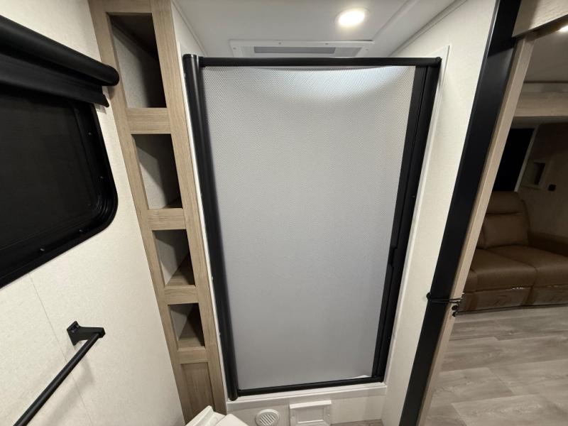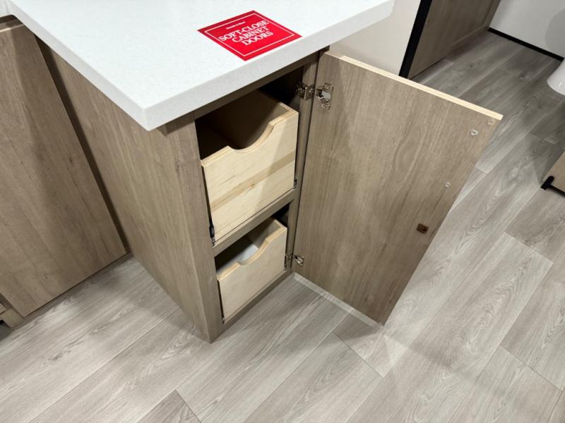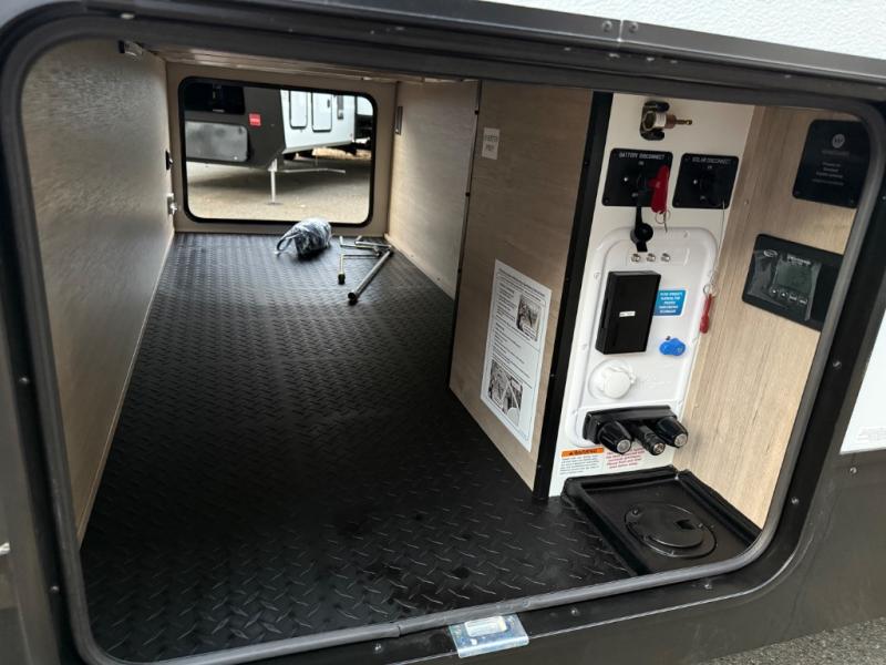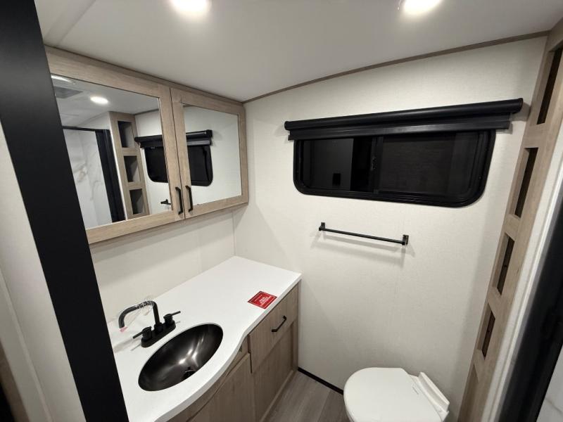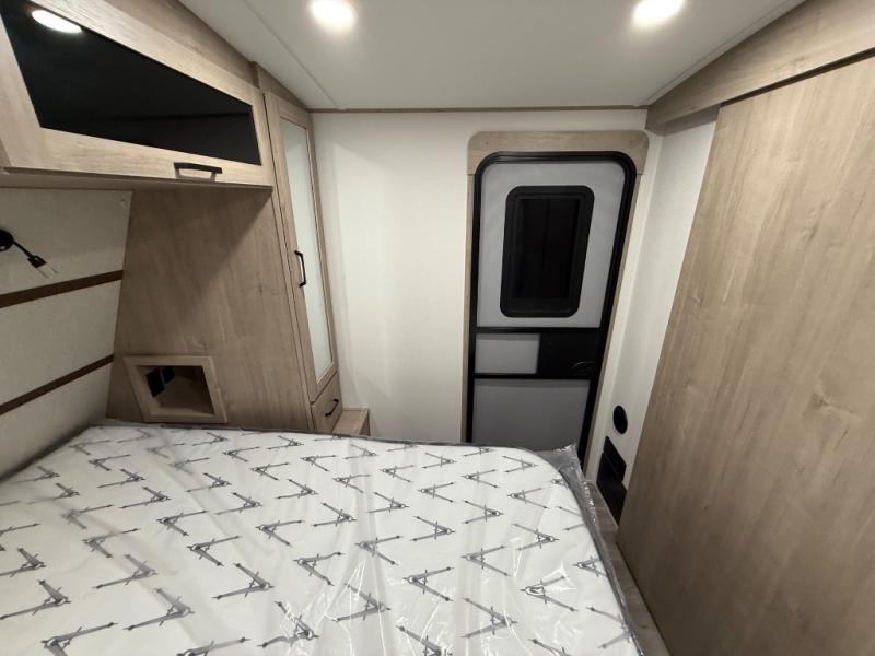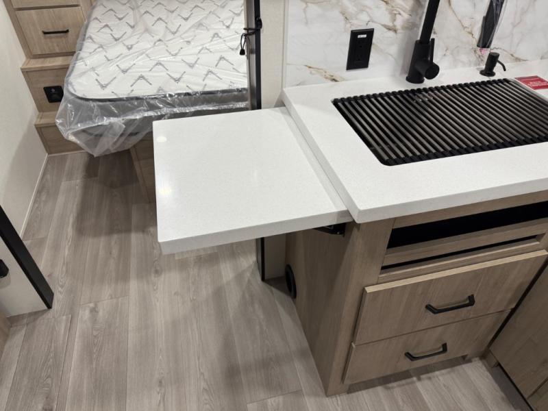 Escape to adventure with this fantastic travel trailer! The private bedroom features a plush 60" x 80" queen bed, spacious wardrobe, and TV prep for entertainment. The kitchen area is fitted with a pull-out pantry, 10 cu. refrigerator, microwave, and three-burner cooktop for gourmet meal prep. Enjoy extra counter space with the flip-up countertop extension, ideal for easy and comfortable cooking. Gather with family and friends at the theater dinette, featuring an LED HDTV for movie nights and game days after that, you can take a relaxing bath in the full rear bathroom, with ample storage. Stay organized on the go with pass-thru storage, 20” x 20” baggage door/trash can storage, and a spacious interior. Enjoy outdoor living under the shade of the 18’ awning, perfect for weekend getaways, or outdoor activities for the adventure-seekers.