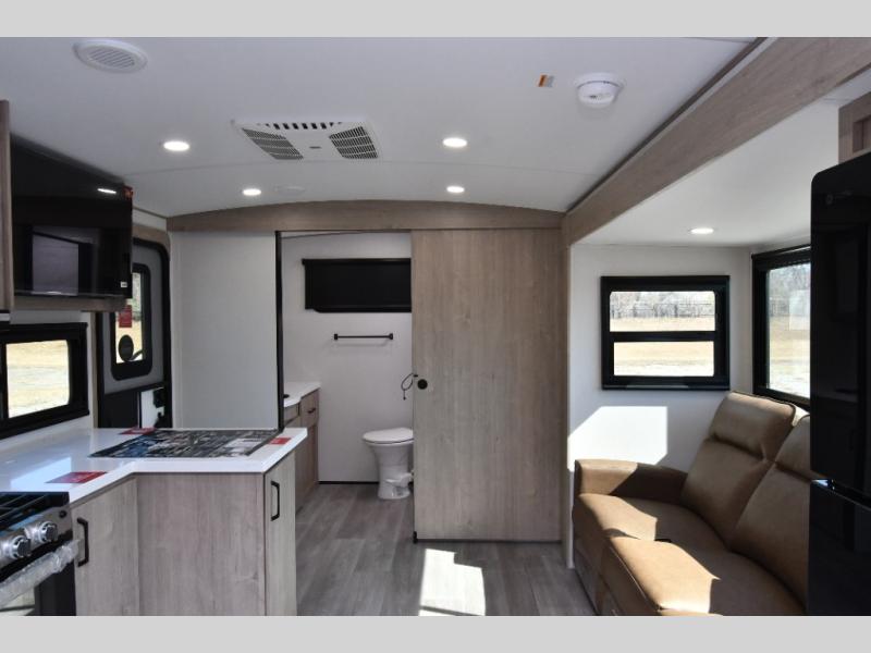 Step into a travel trailer that’s built to elevate every getaway. The new 2026 Grand Design Imagine 2300MK blends residential comfort with smart, adventure-ready design, starting with the warm Brynlee Teak interior and a private front bedroom featuring a 60" x 80" queen bed, wardrobe storage, and TV prep. The theater dinette creates the perfect space for relaxing evenings, movie nights, or casual meals, while large panoramic windows and 81" radius ceilings keep the living area bright, open, and inviting.